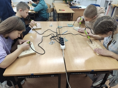Laboratoria Przyszłości. Działania - 12.2022 r. Lekcja techniki kl. V - praca praktyczna - wypalamy w drewnie. Zobacz więcej