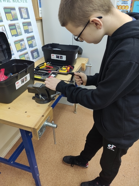 Laboratoria Przyszłości. Działania - 03.2023 r. Lekcja techniki kl. V - maszyny i urządzenia mechaniczne...