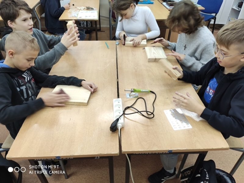 Laboratoria Przyszłości. Działania - 12.2022 r. Lekcja techniki kl. V - praca praktyczna - wypalamy w...