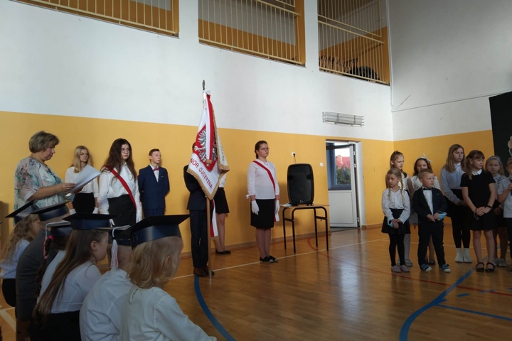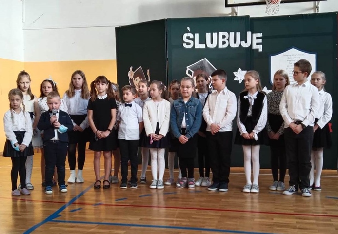 Pierwszaków powitali także członkowie Małego Samorządu wierszami i piosenkami. Dzieci otrzymały upominki od koleżanek i kolegów z Małego Samorządu, a rodzice kupili każdemu dziecku słownik ortograficzny. Uroczystość zakończyła się pamiątkowymi zdjęciami.