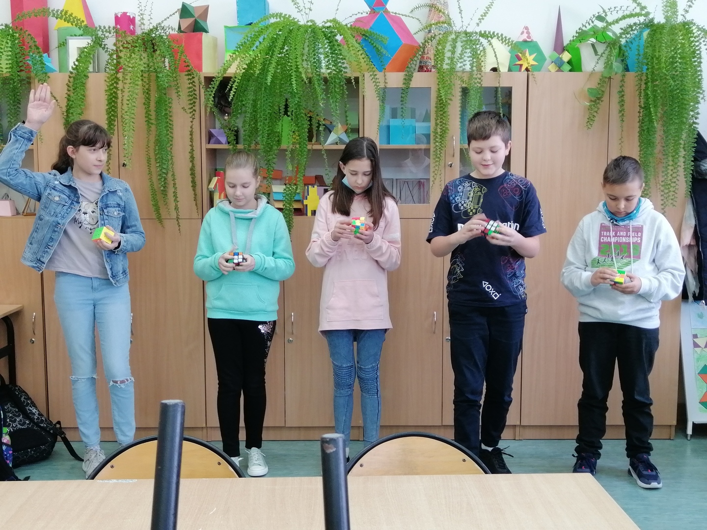 08.12.2021r. odbył się konkurs układania kostki Rubika na czas. Były to pierwsze mistrzostwa tego typu w całej historii naszej szkoły. W turnieju brało udział pięcioro uczniów klasy V. W trakcie konkursu emocje sięgały zenitu, a rywalizacja była zacięta. Ułożenie kostki zajęło uczniom niecałe dwie minuty. Mistrzem układania kostki Rubika naszej szkoły została Ewa Sienkiewicz, której serdecznie gratulujemy!