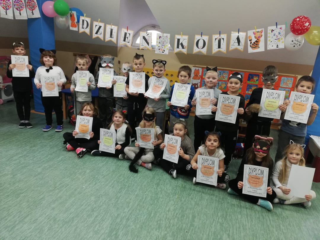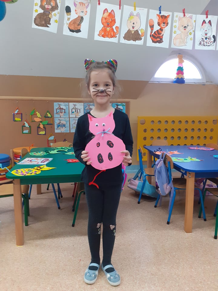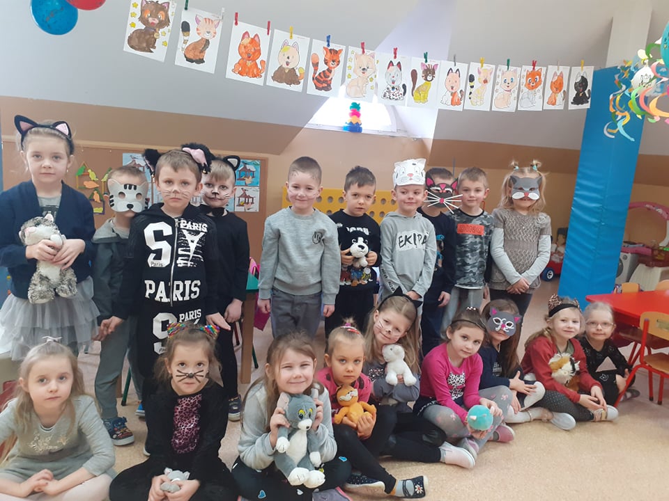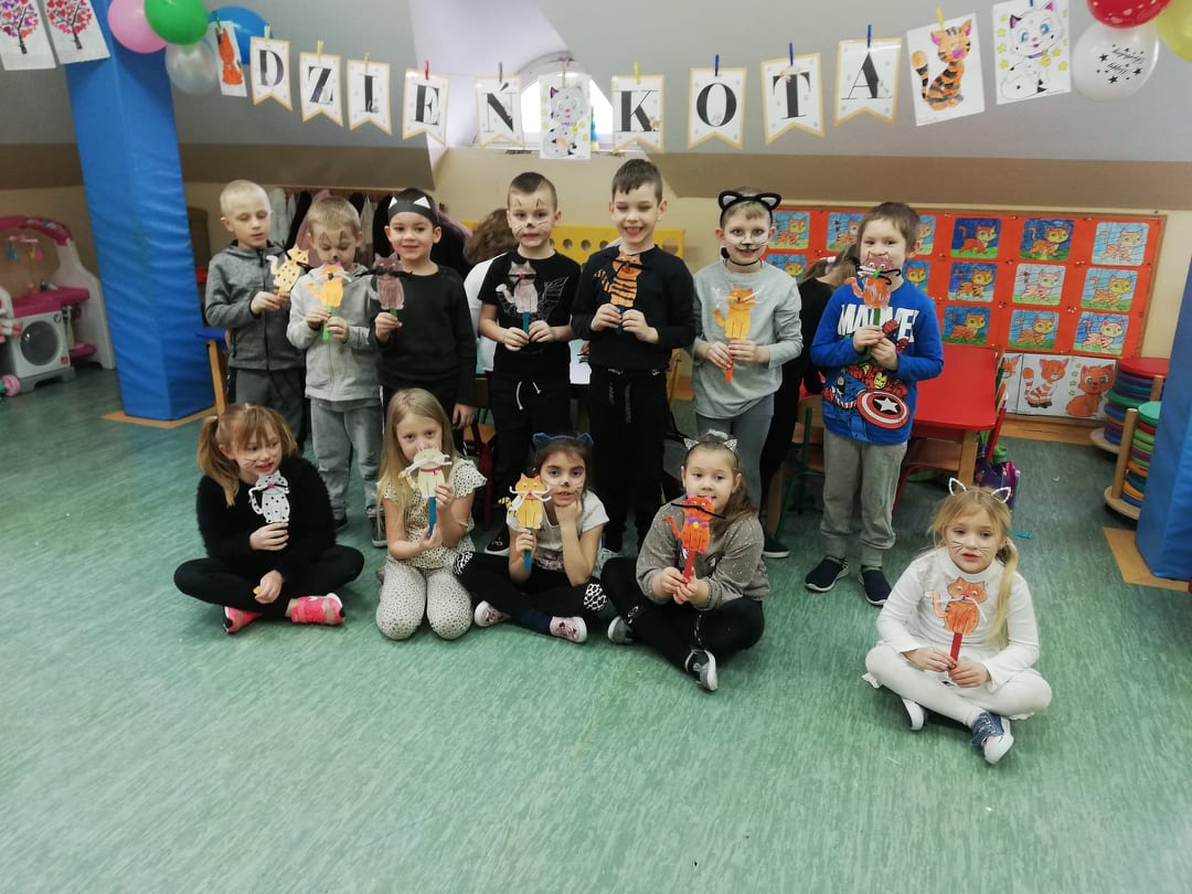 17 lutego nasze przedszkolaki obchodziły Światowy Dzień Kota. Tego dnia dzieci przebrały się za kotki. Zajęcia rozpoczęły się od zapoznania maluchów z kocimi ciekawostkami i nie tylko, była mowa o tym, czym karmić kota, jak o niego dbać, itp. Dzieci opowiadały o swoich słodkich pupilach i kocich bohaterach bajek. Oglądaliśmy i czytaliśmy książki o kociakach. Przedszkolaki zrobiły piękne opaski i prace plastyczne związane z tą tematyką. Ten dzień był bardzo miły i udany, pełen wrażeń i ciekawych, nowych doświadczeń.
