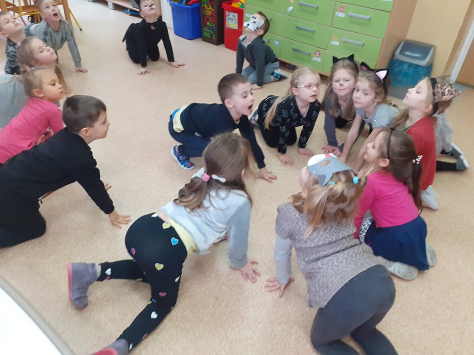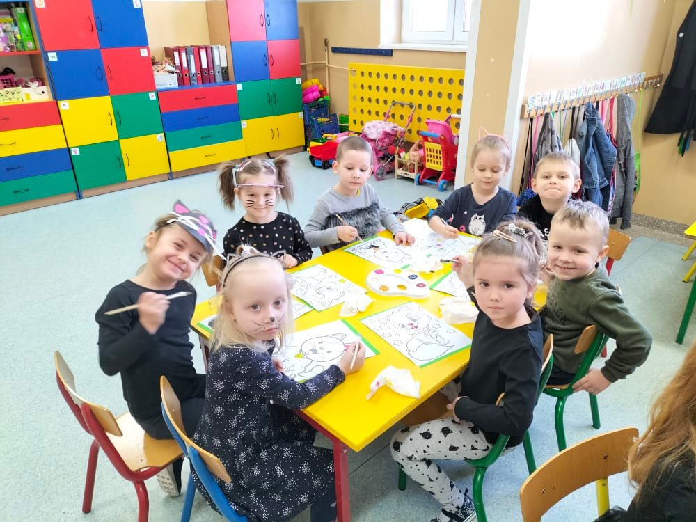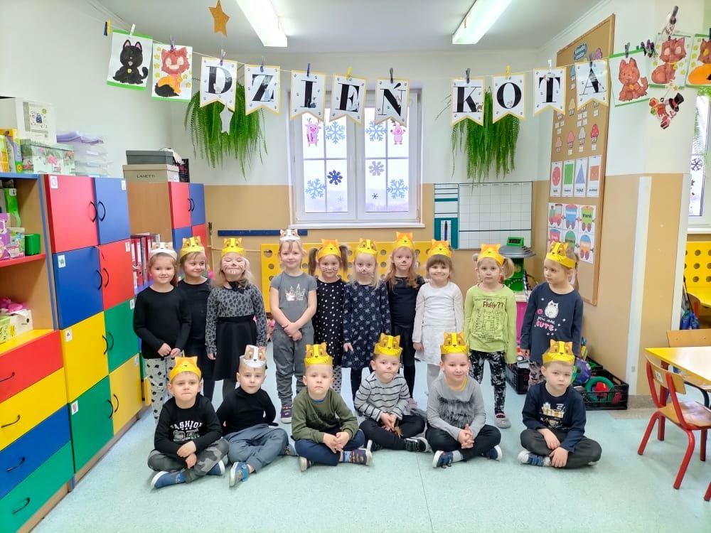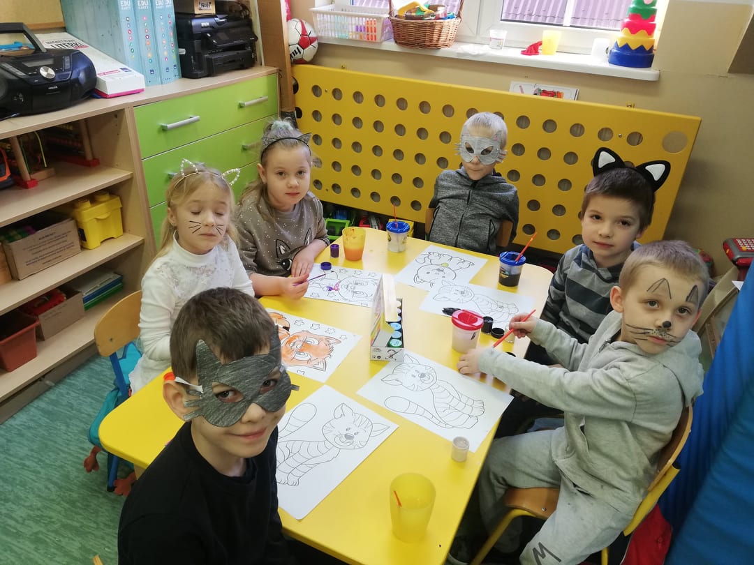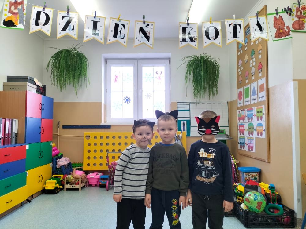 17 lutego nasze przedszkolaki obchodziły Światowy Dzień Kota. Tego dnia dzieci przebrały się za kotki. Zajęcia rozpoczęły się od zapoznania maluchów z kocimi ciekawostkami i nie tylko, była mowa o tym, czym karmić kota, jak o niego dbać, itp. Dzieci opowiadały o swoich słodkich pupilach i kocich bohaterach bajek. Oglądaliśmy i czytaliśmy książki o kociakach. Przedszkolaki zrobiły piękne opaski i prace plastyczne związane z tą tematyką. Ten dzień był bardzo miły i udany, pełen wrażeń i ciekawych, nowych doświadczeń.