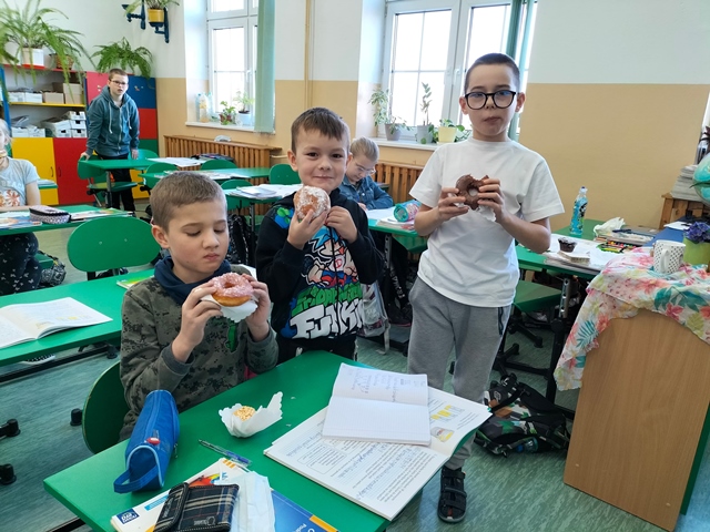 Szczególne podziękowania kierujemy w stronę rodziców i nauczycieli, którzy przygotowali słodkości na Tłusty Czwartek i wzięli czynny udział podczas Gofrowego Dnia oraz dla Szkolnego Koła Caritas i Szkolnego Koła Wolontariatu. Pokazaliście, że chcieć, to móc. Bardzo Wam za to dziękujemy.