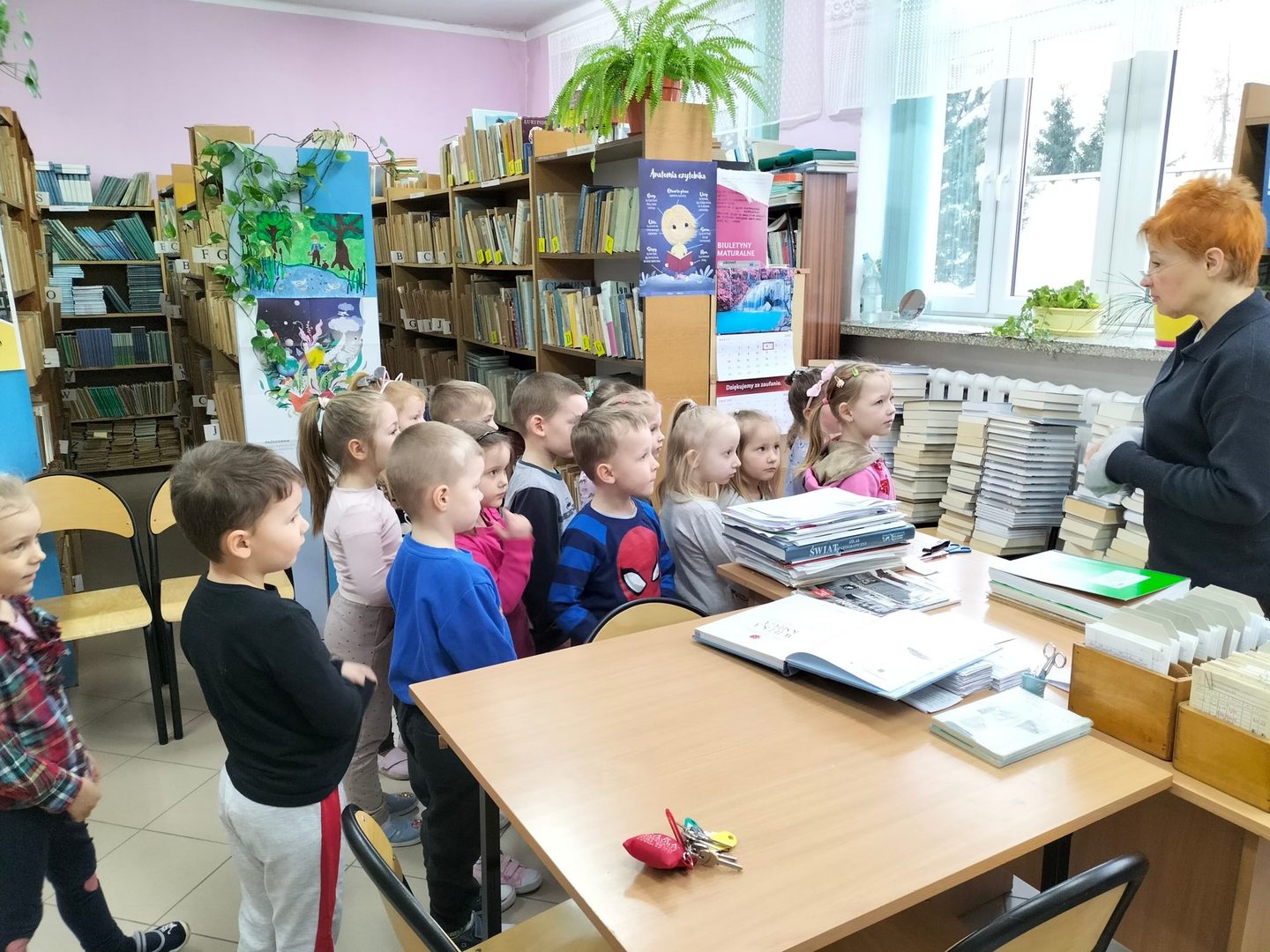 Dnia 4 marca 2022 r., grupa 4-latków odwiedziła Szkolną Bibliotekę. Dzieci zapoznały się z pracą bibliotekarza oraz poznały zasady obowiązujące w bibliotece. Pani bibliotekarka przeczytała przedszkolakom bajkę i pokazała wiele ciekawych książek. Dzieci były bardzo zadowolone. Ten dzień z pewnością na długo pozostanie w ich pamięci. Dziękujemy Pani Ewo za możliwość odwiedzenia biblioteki.