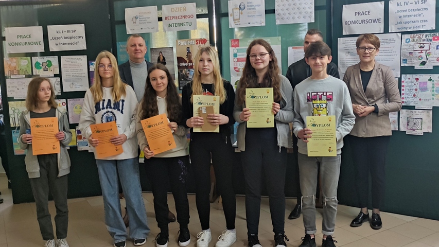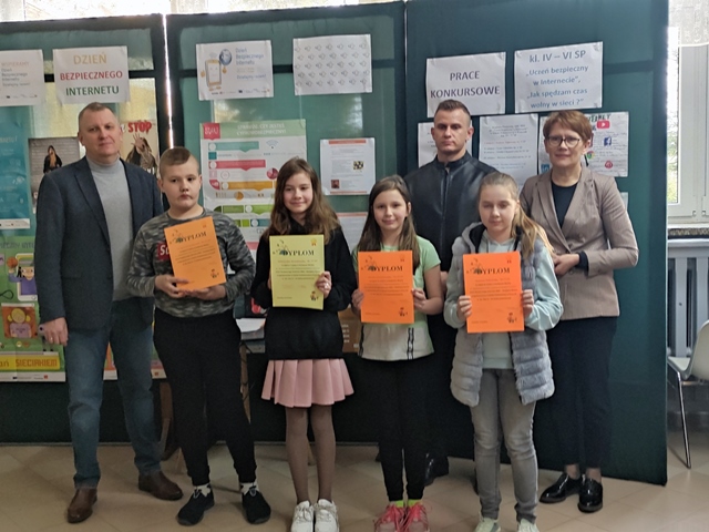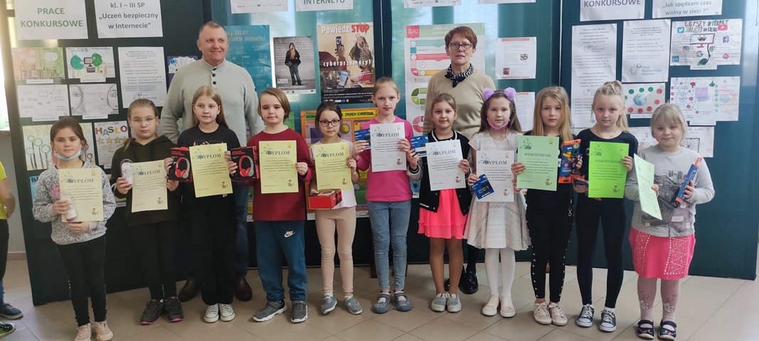 Obchody DBI w naszej placówce podobnie jak na całym świecie rozpoczęliśmy w dniu 08.02.2022 r. Uczniowie zostali zapoznani z celami, tematyką i działaniami, które miały zostać zrealizowane w dniach 08.02.2022 – 28.03.2022. W ramach zaplanowanych działań powstała gazetka tematyczna nt.„ Bezpieczeństwo w sieci i bezpieczne korzystanie z Internetu” oraz wystawa prac konkursowych. Działaniami objęliśmy wszystkich 166 uczniów z klas I-VIII SP. W dniach od 07.02.2022 r. do 11.02.2022 r. we wszystkich klasach odbyły się pogadanki z wychowawcami na temat bezpieczeństwa w sieci oraz zagrożeń, jakie niesie niewłaściwe korzystanie z zasobów sieciowych. W tych dniach w ramach zajęć informatyki i edukacji informatycznej odbyły się lekcje nt.: „Bezpieczeństwo w sieci i bezpieczne korzystanie z Internetu”. Zorganizowano konkurs wiedzy w dwóch kategoriach wiekowych: dla uczniów klas IV-VI i VII–VIII SP na temat: „Bezpieczeństwo w sieci i bezpieczne korzystanie z Internetu” oraz konkurs na pracę plastyczną dla uczniów klas I–III oraz IV-VI SP nt. Dzień Bezpiecznego Internetu: „Razem dla lepszego internetu!", ,„Uczeń bezpieczny w Sieci”, „ Jak spędzam czas wolny w Sieci". Ponadto zgłoszono udział naszej szkoły w powyższej inicjatywie na ogólnopolskim portalu www.dbi.pl.