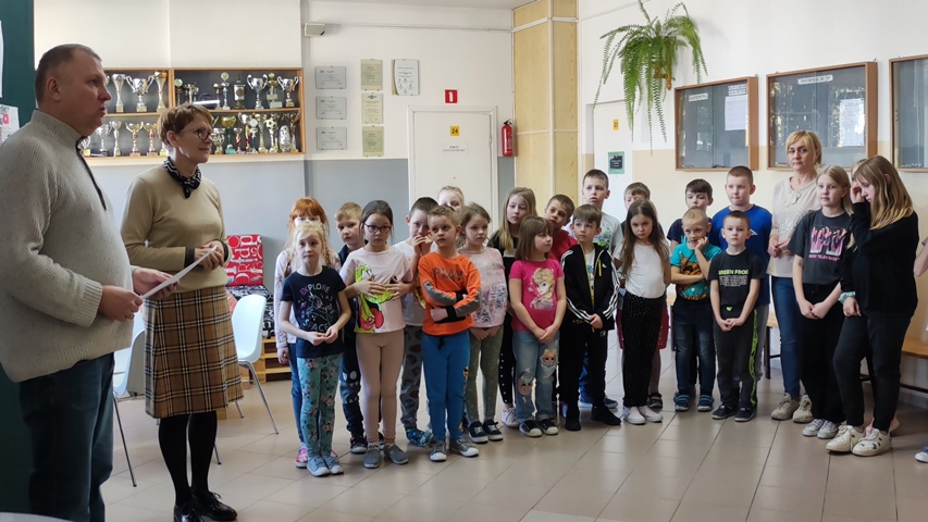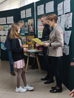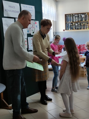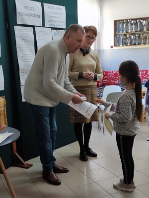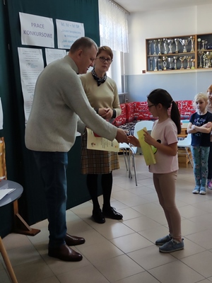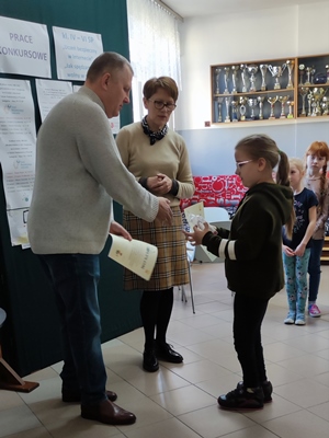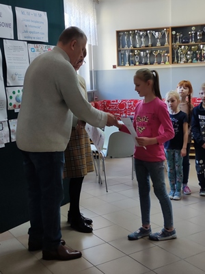 Spotkania podsumowujące działania odbyły się w dniach 25 - 28.03.2022 r. Na spotkaniach podsumowano i ogłoszono wyniki konkursów oraz wręczono uczniom nagrody. Wręczenia nagród rzeczowych i dyplomów dokonali: p. Dyrektor Elżbieta Zając i p. Rafał Lejmel - Przewodniczący Gminnego Zespołu Interdyscyplinarnego w Gminie Przerośl.