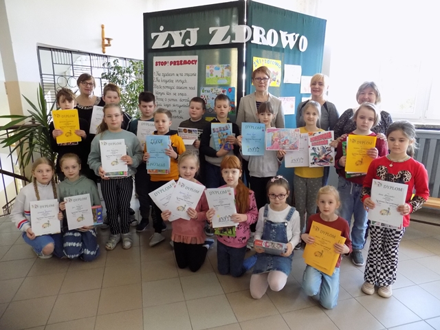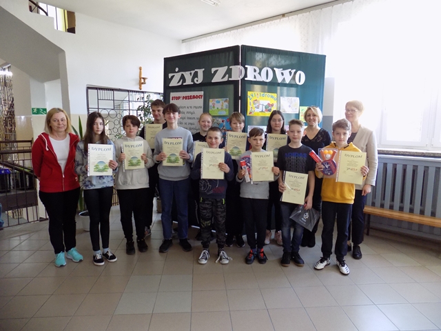 W teście wiedzy pod nazwą „Żyj zdrowo! Stop przemocy!” wzięli udział wszyscy uczniowie z klas IV-VIII. W wyniku rywalizacji uczniowie zajęli następujące miejsca: