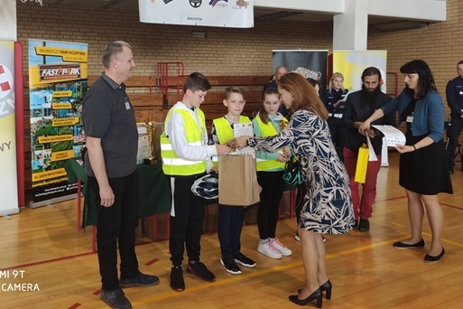 Drużyny rywalizowały ze sobą w konkurencjach praktycznych: jazda rowerem po miasteczku ruchu drogowego i torze przeszkód oraz udzielanie pierwszej pomocy przedmedycznej. Następnie zawodnicy pisali testy zawierające zadania z zakresu przepisów ruchu drogowego oraz skrzyżowań. Nasza drużyna w klasyfikacji zespołowej zajęła III miejsce. W klasyfikacji indywidualnej Damian Sznurkowski - Wiszniewski zajął III, a Robert Szlaszyński IV miejsce w turnieju. GRATULACJE!