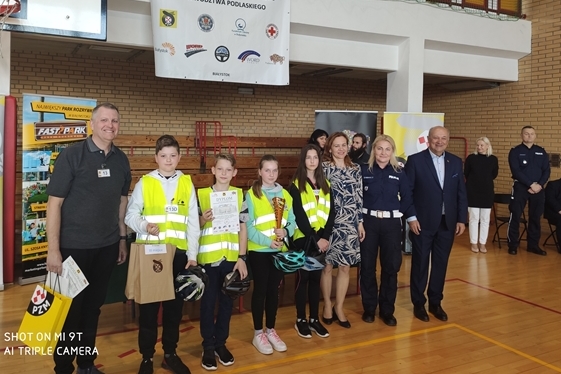 12 maja 2022 r. uczniowie z naszej szkoły wzięli udział w XLIII Finale Wojewódzkiego Ogólnopolskiego Turnieju Bezpieczeństwa w Ruchu Drogowym dla uczniów szkół podstawowych, który odbył się w Szkole Podstawowej nr 12 im. Zygmunta Glogera w Białymstoku. W rywalizacji wzięło udział 52 uczniów z 13 najlepszych drużyn z województwa podlaskiego. Powiat suwalski w I grupie wiekowej (rocznik 2010 i młodsi) reprezentowała zwycięska drużyna wyłoniona w etapie powiatowym, czyli czworo piątoklasistów z naszej szkoły: Justyna Sojkowska, Olga Naumowicz, Damian Sznurkowski - Wiszniewski oraz Robert Szlaszyński. Do obu części uczniów przygotował p. Sławomir Małachowski.