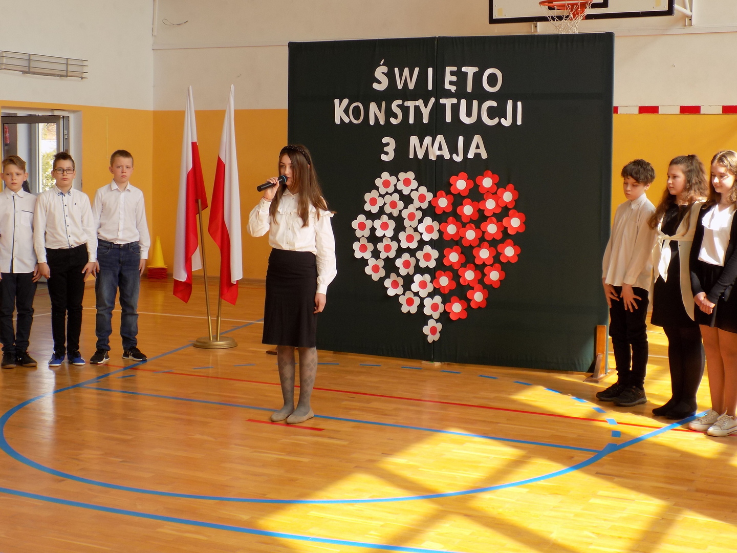 29 kwietnia w naszej szkole odbyła się uroczysta akademia z okazji majowego święta. W tym roku przygotowali ją uczniowie klasy V oraz zespół Przeroślaczki.