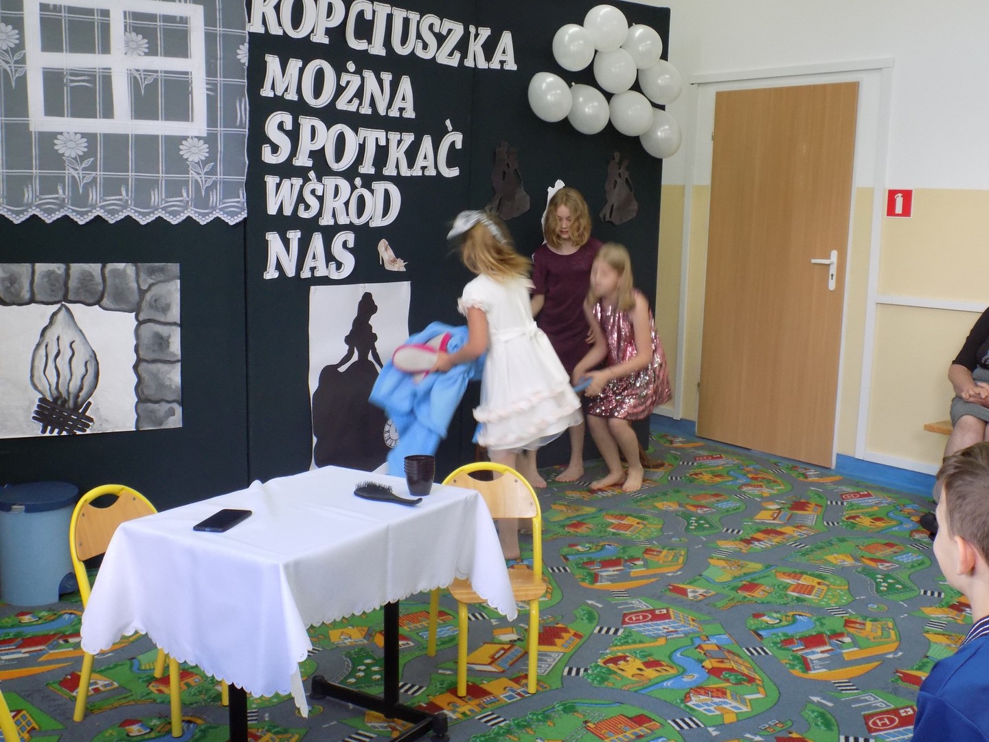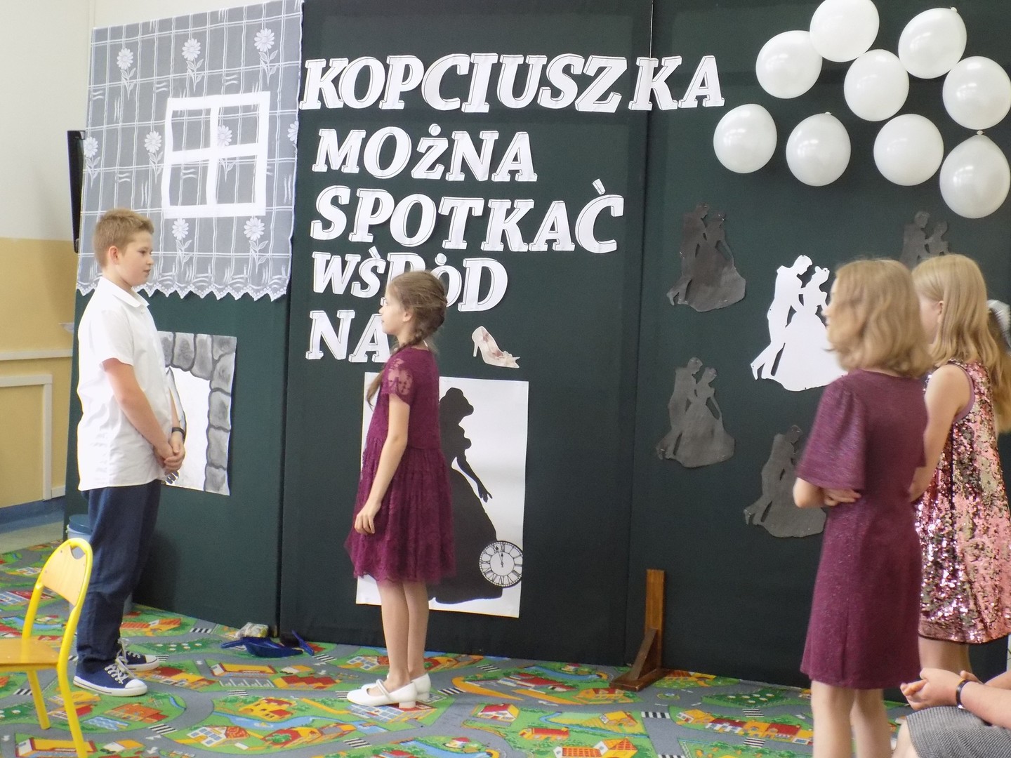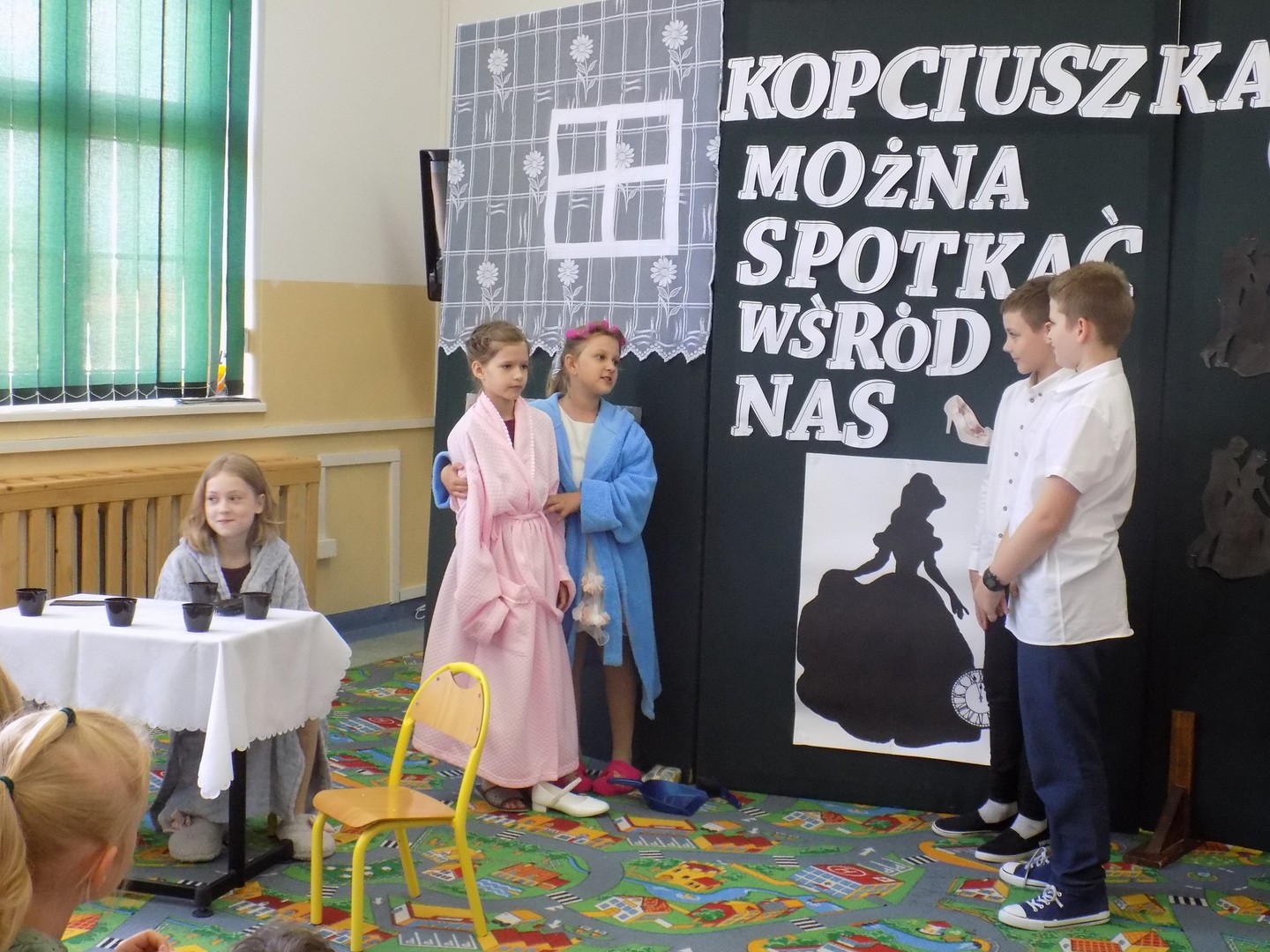W dniu 14 czerwca 2022r. w naszej szkole odbyło się wystawienie spektaklu pt. „Kopciuszka można spotkać wśród nas” dla uczniów klas I – III. Spektakl przygotowała grupa aktorów z koła teatralnego prowadzonego pod kierunkiem pedagoga szkolnego p. Iwony Barbary Galińskiej utworzonego w szkole w ramach projektu „Od najmłodszych lat zdobywamy świat”. Byli to uczniowie klasy trzeciej: Julia Jodzio, Julia Brejnak, Sandra Bordzio, Milena Lejmel, Wiktor Grzybowski, Kuba Atkielski i Damian Fota. Aktorom dziękujemy za wspaniały występ i życzymy dalszych sukcesów.