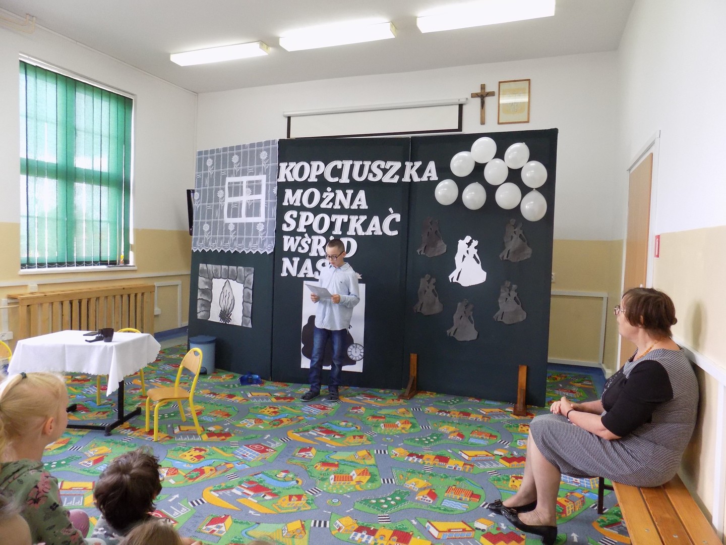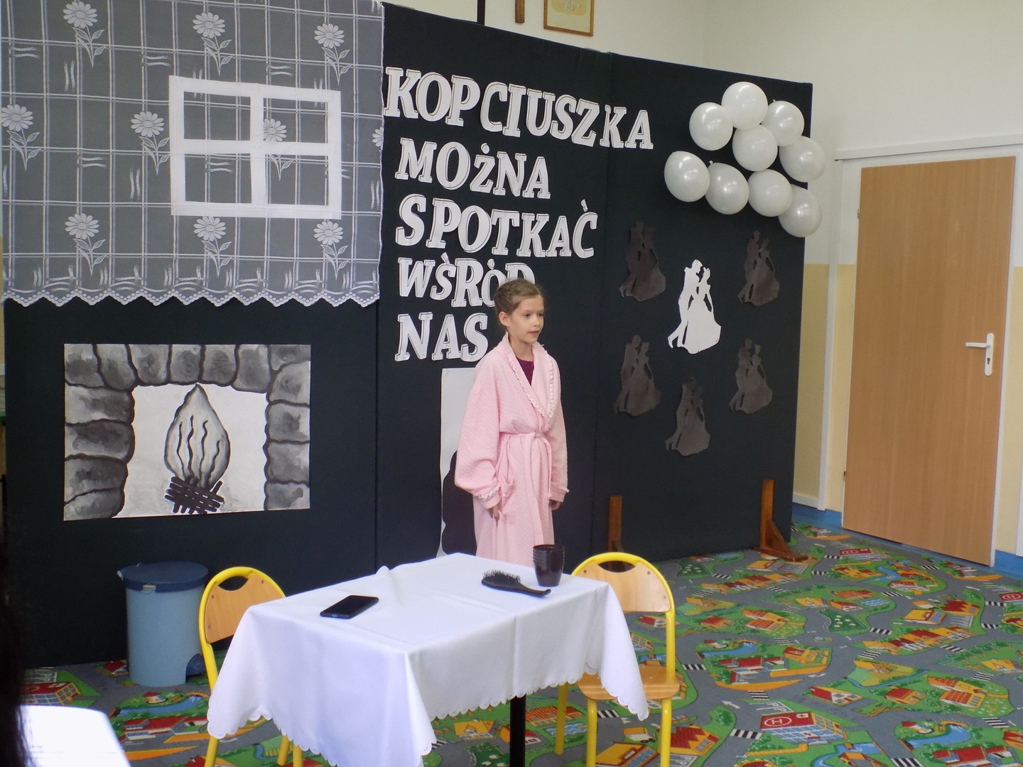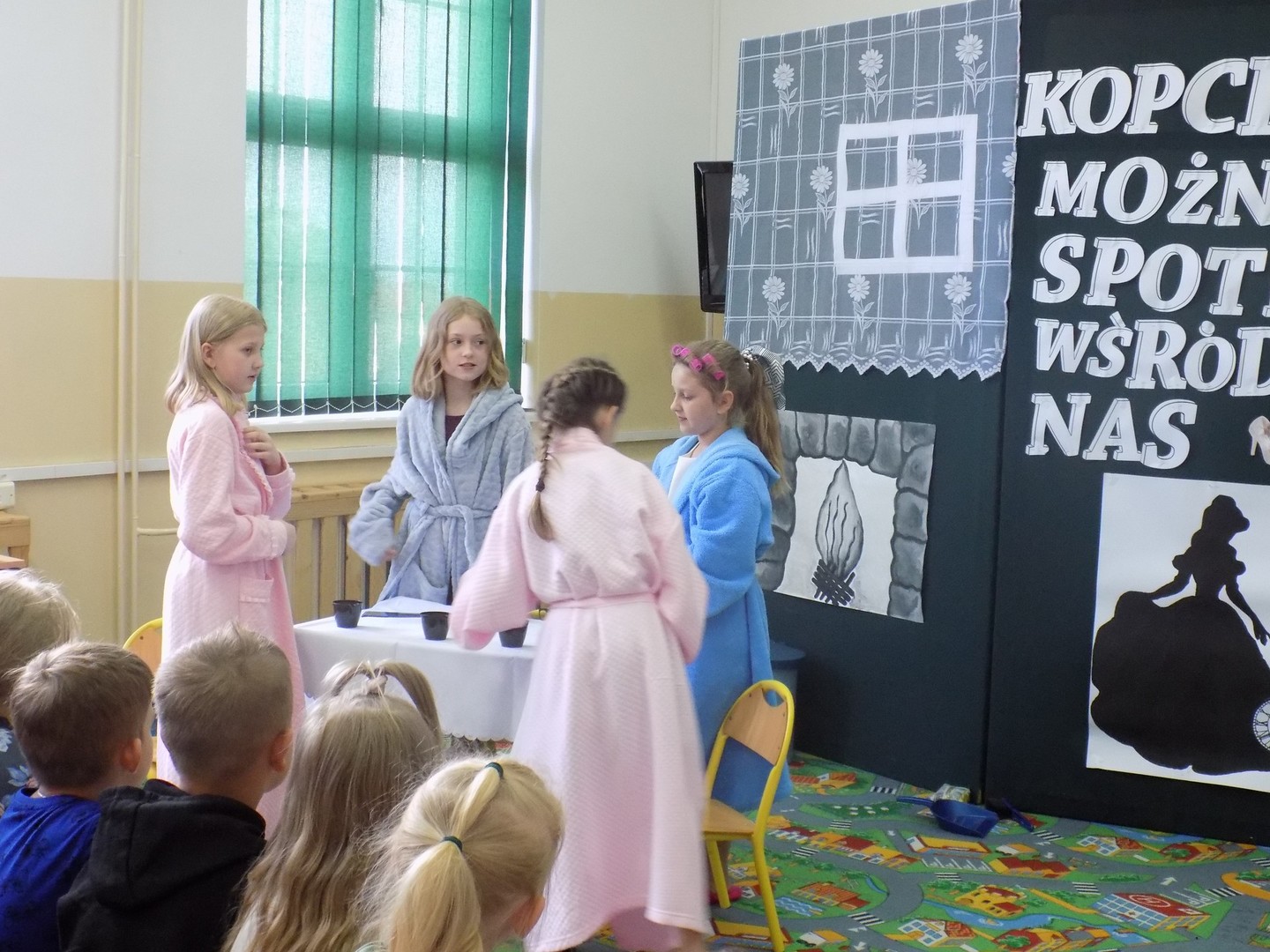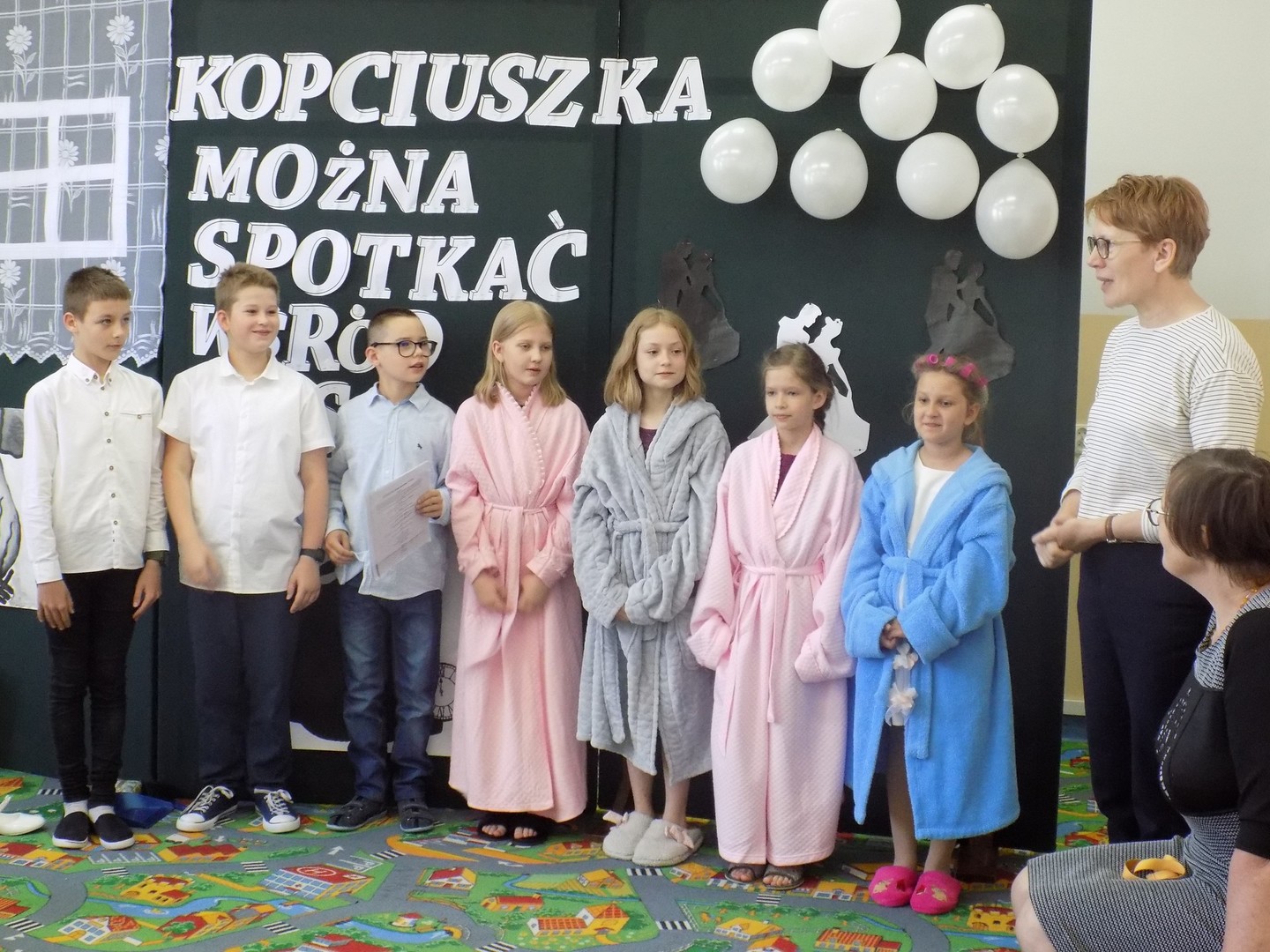 W dniu 14 czerwca 2022r. w naszej szkole odbyło się wystawienie spektaklu pt. „Kopciuszka można spotkać wśród nas” dla uczniów klas I – III. Spektakl przygotowała grupa aktorów z koła teatralnego prowadzonego pod kierunkiem pedagoga szkolnego p. Iwony Barbary Galińskiej utworzonego w szkole w ramach projektu „Od najmłodszych lat zdobywamy świat”. Byli to uczniowie klasy trzeciej: Julia Jodzio, Julia Brejnak, Sandra Bordzio, Milena Lejmel, Wiktor Grzybowski, Kuba Atkielski i Damian Fota. Aktorom dziękujemy za wspaniały występ i życzymy dalszych sukcesów.