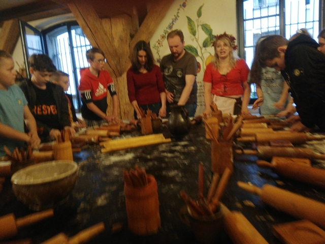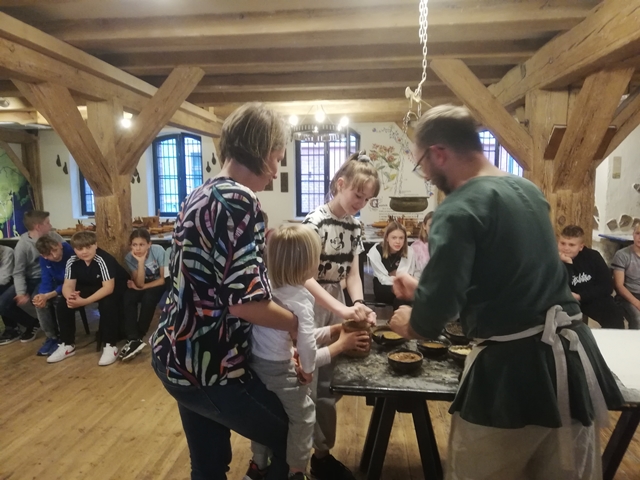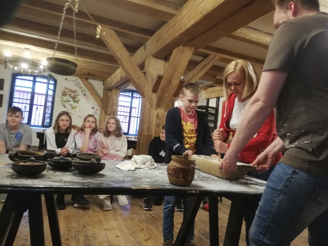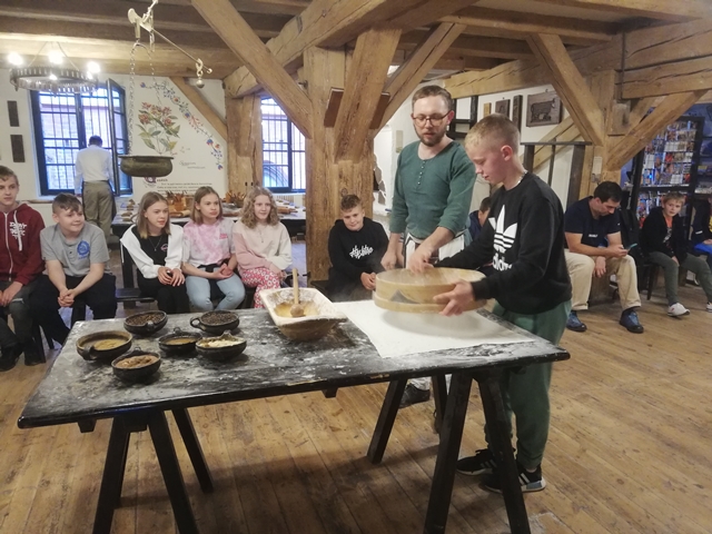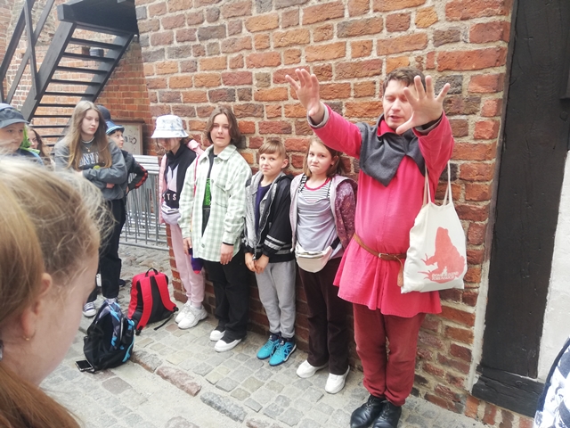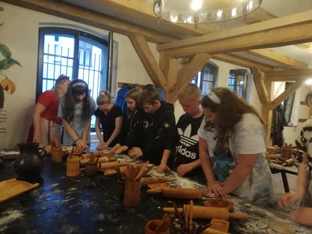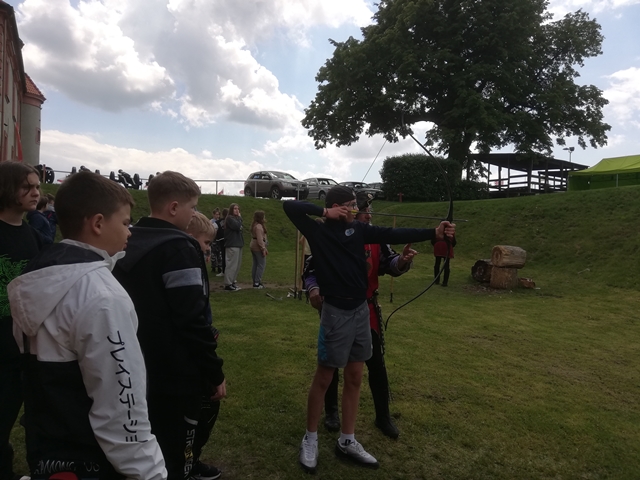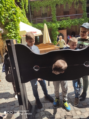 Drugi dzień zaczął się bardzo ciekawie. Najbardziej emocjonująca okazała się zabawa w domu zagadek, czyli w tzw. scape room. Zadaniem dzieci było wykonanie zadań, odszukanie różnych przedmiotów czy szyfru do otwarcia kłódki, aby wydostać się z pokoju. Ostatnim celem wycieczki było zwiedzanie Zamku w Golubiu-Dobrzyniu i udział w zabawach historycznych.