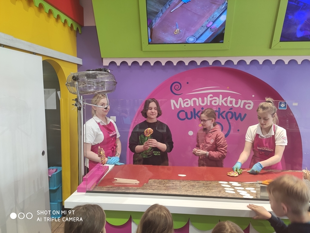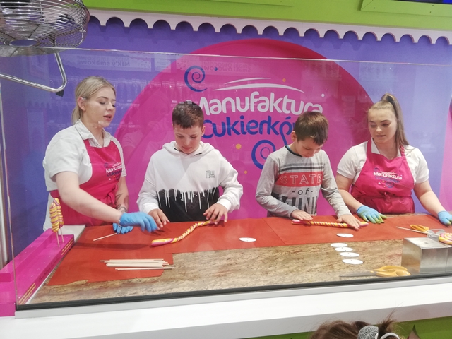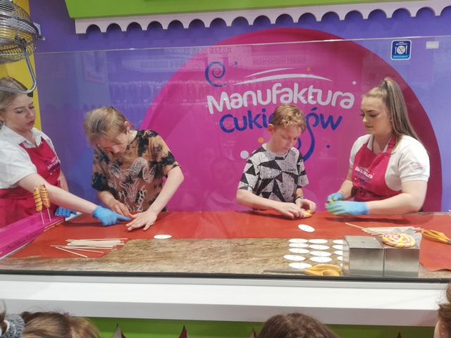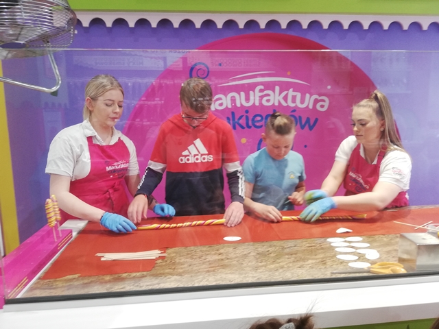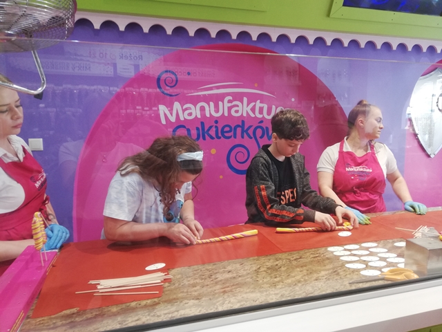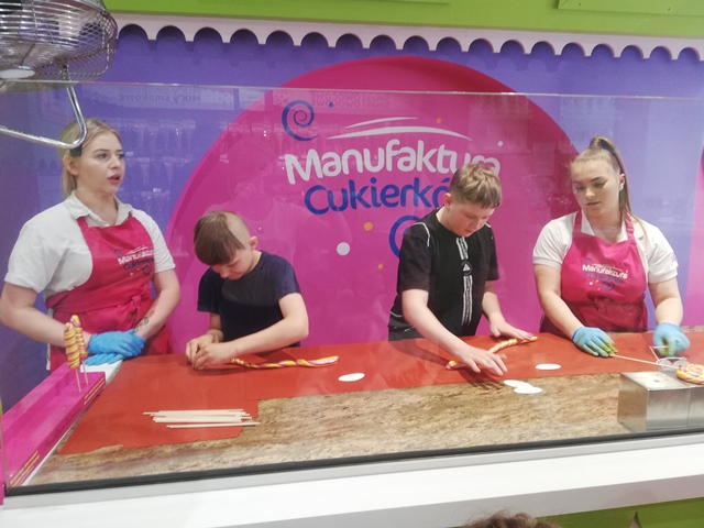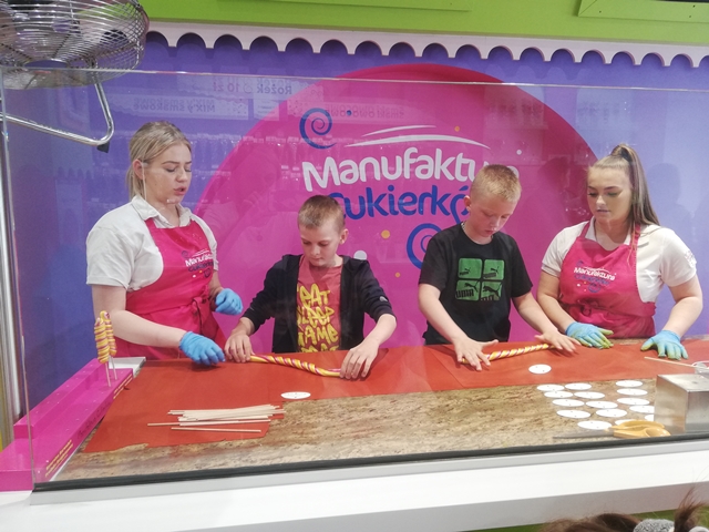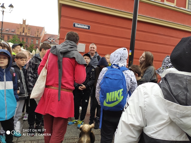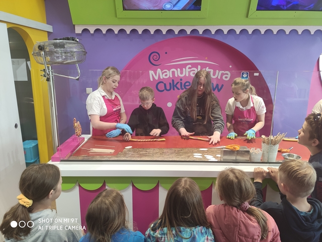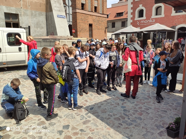 Z okazji Dnia Dziecka uczniowie z klasy czwartej, piątej i szóstej wraz ze swoimi wychowawcami wyjechali na dwudniową wycieczkę. Po sześciogodzinnej podróży autokarem grupa uczniów spotkała się z przewodnikiem. Rozpoczęliśmy zwiedzanie od poznania zabytkowej części Torunia (wpisanej na listę UNESCO). Pan przewodnik opowiadał legendy związane z Toruniem i oprowadzał po najciekawszych zakątkach Starego Miasta. Następnie w Manufakturze Cukierków dzieci uczestniczyły w produkcji lizaków i cukierków, tam też miały możliwość wykonania własnoręcznie lizaka dla siebie, za co otrzymały Dyplomy Cukiernika. Kolejnym punktem programu był Dom Legend Toruńskich, w którym uczniowie nie tylko poznawali legendy, ale również uczestniczyli w inscenizacjach. Zabawy i śmiechu przy tym było co niemiara! Na koniec dnia w Żywym Muzeum Piernika pod nadzorem Mistrza piernikarstwa uczestnicy wykonali pierniki, które zabrali do domu jako pamiątkę. Za swój udział otrzymali też Certyfikaty Czeladnika. Po długim i męczącym dniu trzeba było jeszcze przejść niecałe 3 km do hotelu na kolację i nocleg.
