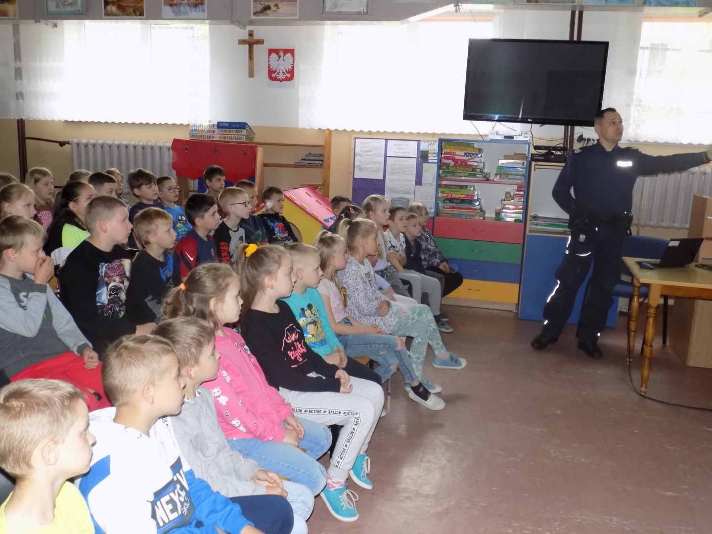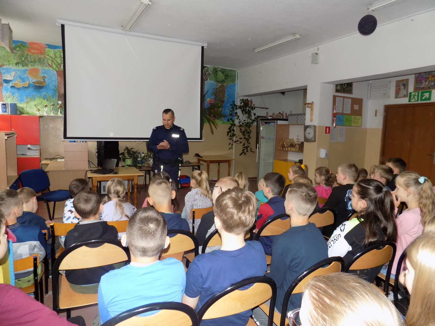 W dniu 15 czerwca 2022r. w świetlicy szkolnej odbyło się spotkanie z policjantem Posterunku Policji w Filipowie dzielnicowym p. Rafałem Domańskim poświęcone tematyce bezpieczeństwa na wakacjach. W spotkaniu uczestniczyli uczniowie z klas I – III szkoły podstawowej.