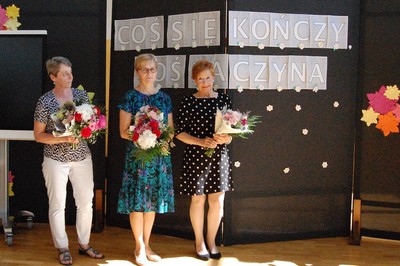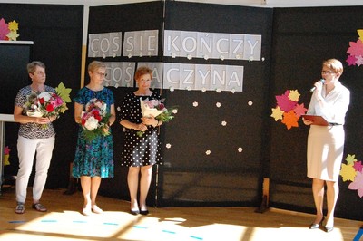 W trakcie apelu symbolicznie pożegnaliśmy również pracowników szkoły, ktorzy przechodzą na emeryturę. Paniom: Grażynie Tarasewicz, Ewie Barbarze Rynkiewicz, Barbarze Rubin i Halinie Kalinowskiej dziękujemy za wieloletnią, rzetelną i sumienną pracę. Życzymy zdrowia i wszelkiej pomyślności na nowym etapie życia.