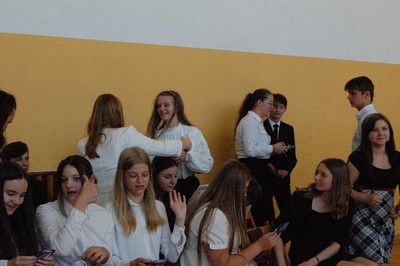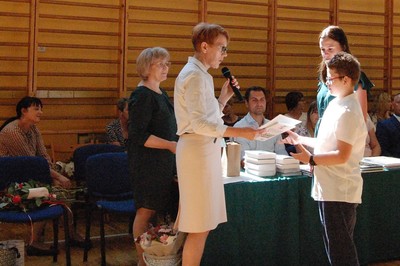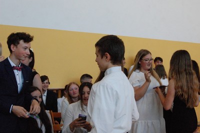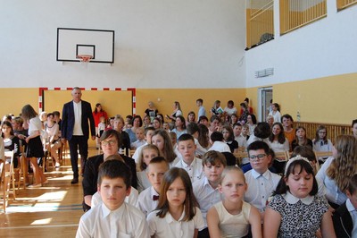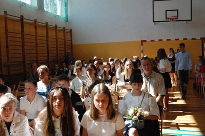 Jak zawsze w szczególny sposób zakończenie roku szkolnego przeżywali ósmoklasiści. Było to ich ostatnie wspólne spotkanie w tym miejscu i w takim gronie. Po wakacjach przestąpią progi nowych szkół i rozpoczną nowy, ważny etap swojego życia. Miło było usłyszeć tyle ciepłych słów, którymi ósmoklasiści pożegnali się ze szkołą i z nauczycielami. Życzymy Wam powodzenia i szerokich horyzontów do realizowania wspaniałych i śmiałych planów.