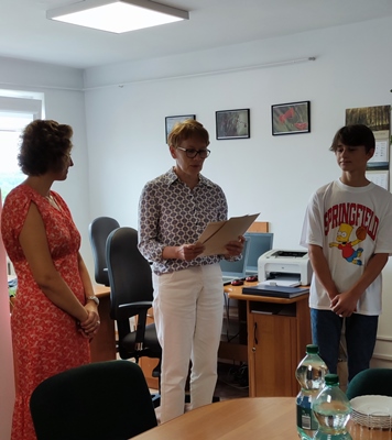 Uroczyste wręczenie nagród ufundowanych przez p. Agatę Jurewicz, p. Aleksandrę Jurewicz i p. Rafała Bukowskiego odbyło się w naszej szkole 8 lipca.