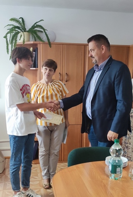 W tym roku szkolnym nagroda dla najlepszego absolwenta Szkoły Podstawowej w Przerośli wręczona została Grzegorzowi Wróblewskiemu. Otrzymał on najlepsze wyniki klasyfikacji końcowej oraz najwyższą średnią ze wszystkich części egzaminu ósmoklasisty. Serdecznie gratulujemy Grzegorzowi i Jego Rodzicom. Przypominamy, że w ubiegłym roku taką samą nagrodę odebrał starszy brat Grzegorza - Tomasz.