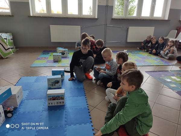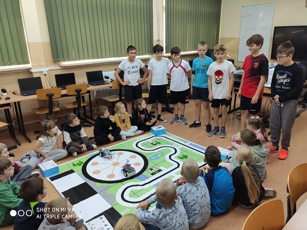 Uczniowie z klasy VI SP pod opieką p. Sławomira Małachowskiego - nauczyciela informatyki i zajęć programowania, przygotowali i poprowadzili dla swoich młodszych koleżanek i kolegów z klasy I SP zajęcia programowania robotów. Zajęcia odbywały się pod hasłem: Zabawa z robotami. Miały one formę wspólnej nauki pisania programów dla robota Photon i Mbot. Na koniec starsi uczniowie przygotowali swoim młodszym kolegom niespodziankę, jaką była walka robotów mBot obudowanych klockami LegoMindstrom. CodeWeek to świetna okazja, by najmłodsi uczniowie już od I klasy rozpoczęli swoją przygodę z kodowaniem i robotami, a bogate wyposażenie placówki w roboty zostało w pełni wykorzystane. Sądząc po reakcjach uczniów, zajęcia się im bardzo podobały. Wydarzenie to zostało zgłoszone przez naszą szkołę i umieszczone przez głównych organizatorów na stronie www.codeweek .eu/events.