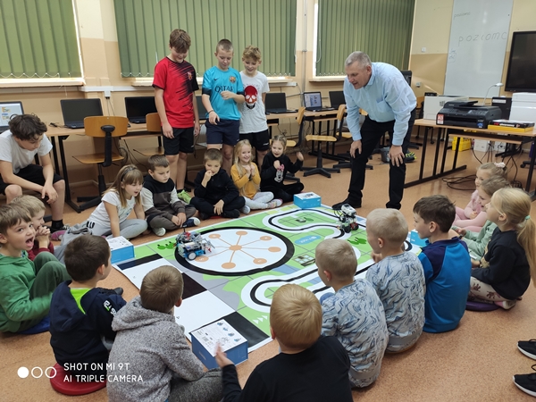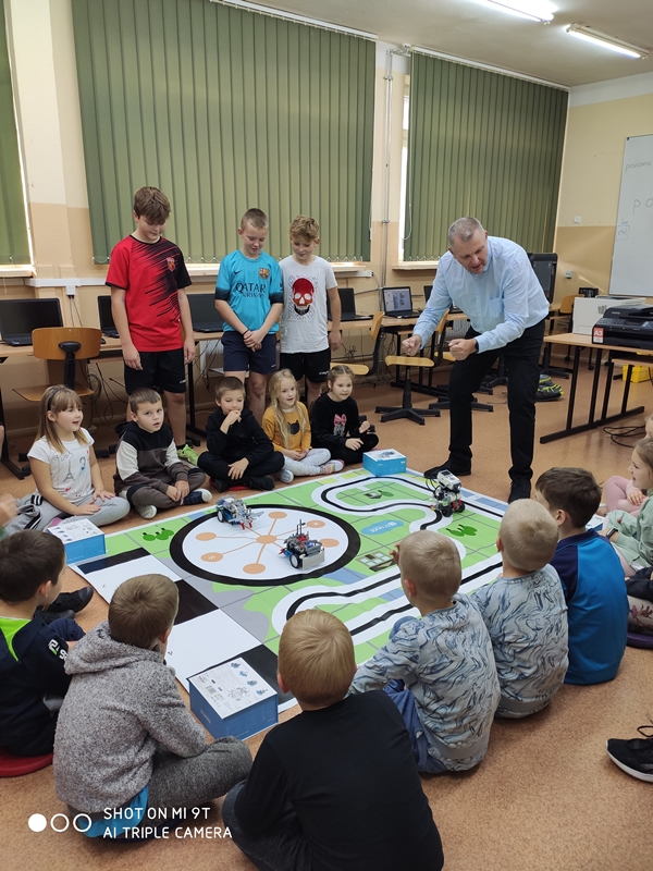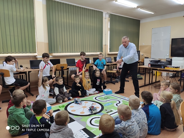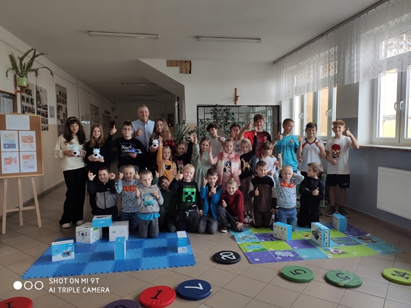 Od 8 do 23 października 2022 roku w całej Europie jest obchodzony Europejski Tydzień Kodowania, czyli CodeWeek 2022. Jest to wydarzenie społeczne, w które angażują się wszystkie europejskie państwa i ich instytucje, w tym szkoły. My również po raz kolejny włączyliśmy się do tej akcji. W dniu 21 października 2022 r. (piątek) w godz. od 12.30 do 13.30 zorganizowane zostały w naszej szkole zajęcia z programowania robotów. W rozpoczęciu zajęć wzięła udział Dyrektor Szkoły Pani Iwona Barbara Galińska.