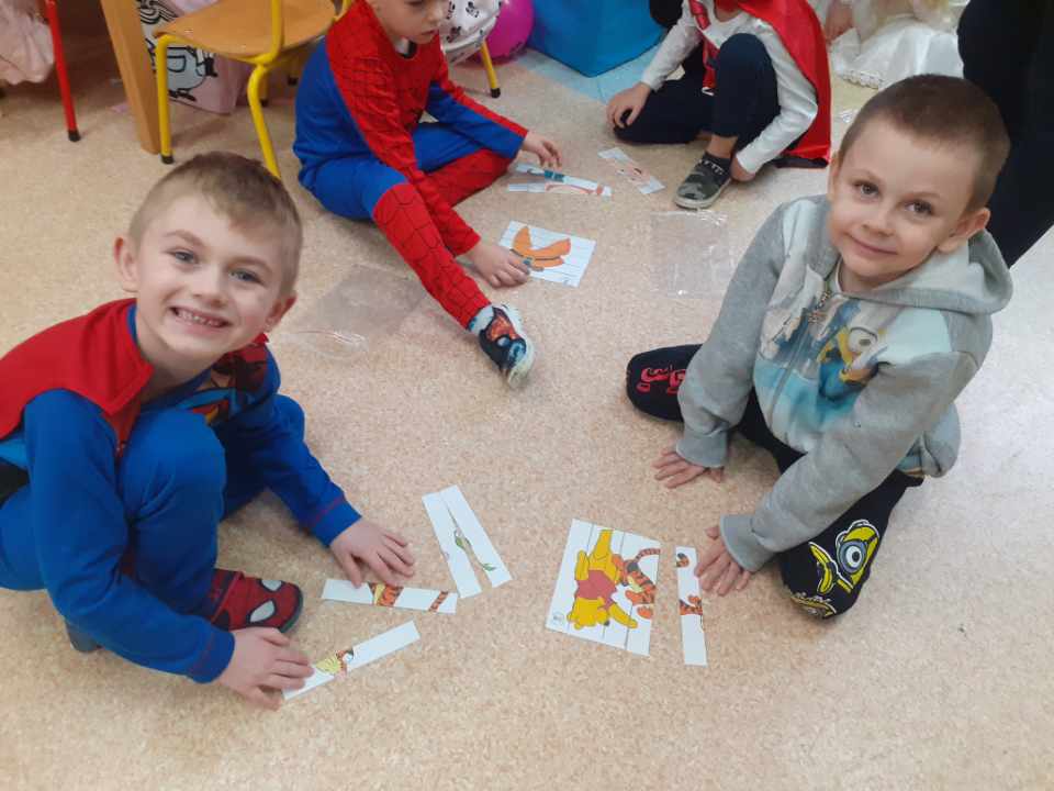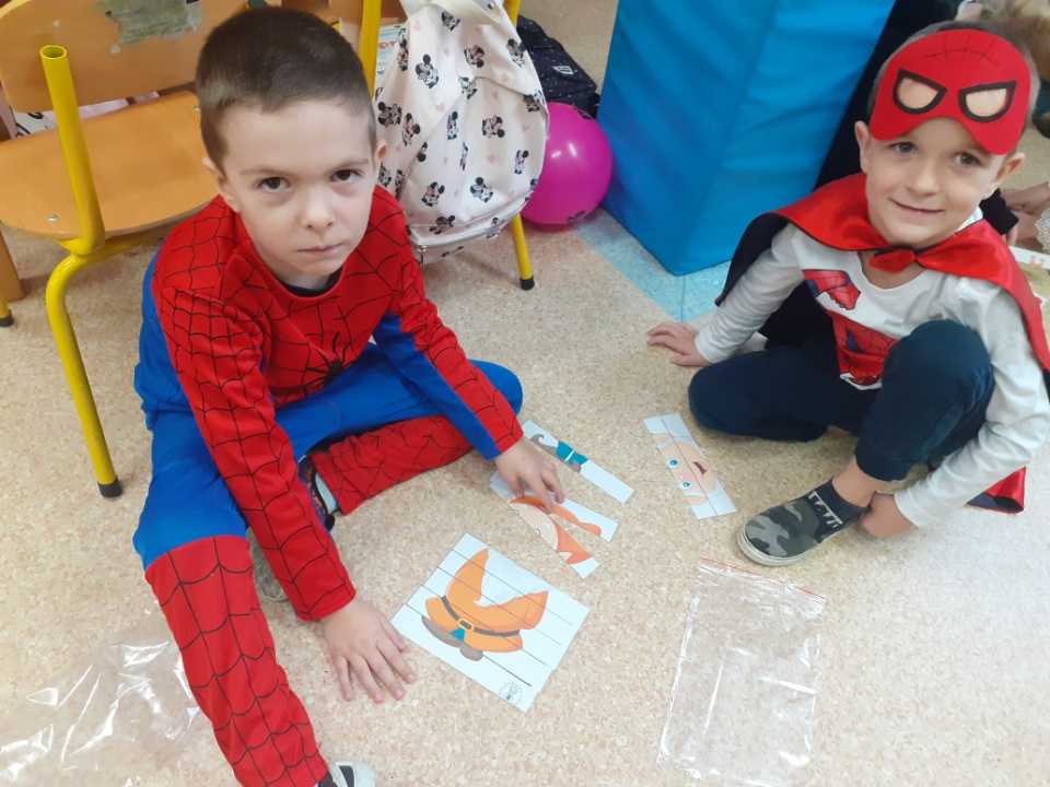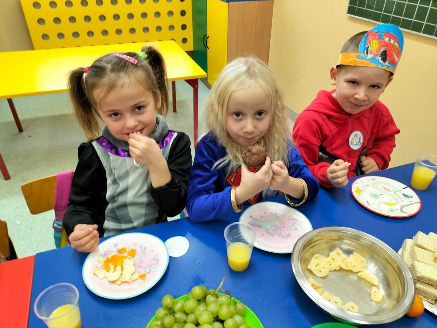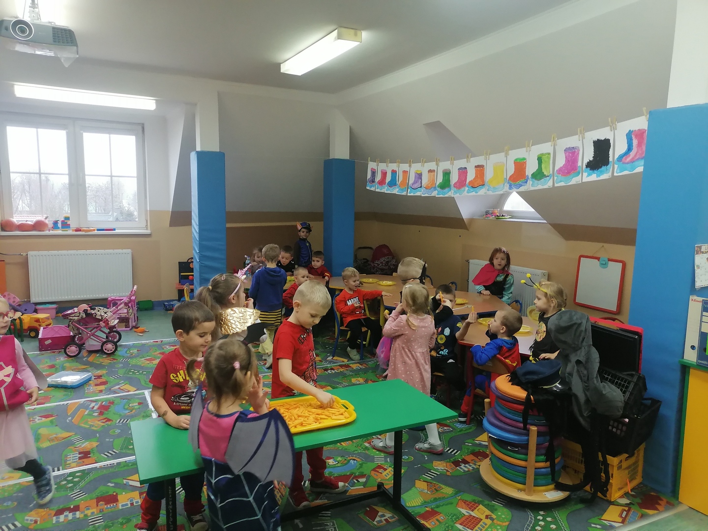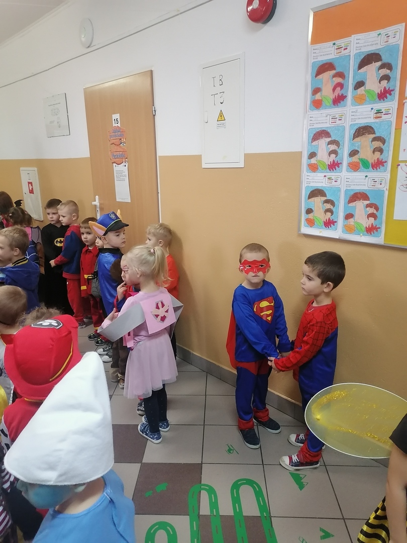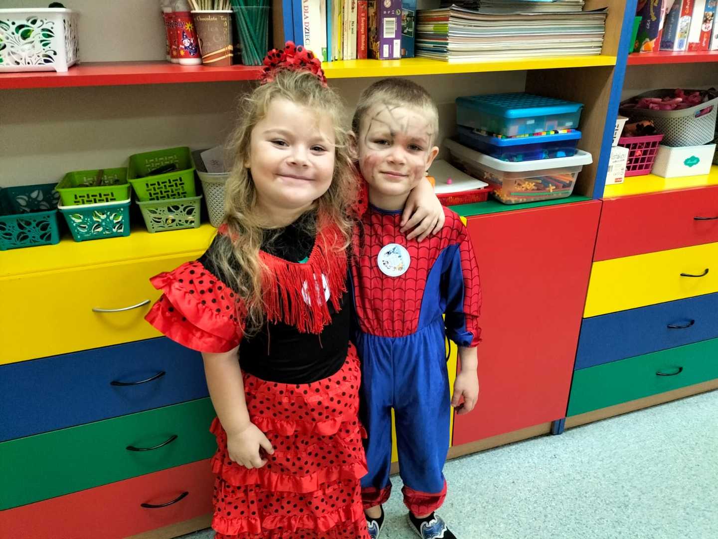 Z okazji Międzynarodowego Dnia Postaci z Bajek dn. 7.11.2022r. dzieci z oddziałów przedszkolnych przybyły do przedszkola przebrane w piękne bajkowe stroje. Nie zabrakło: Księżniczek, Spider-Mana, Batmana, piesków z Psiego Patrolu, Czerwonego Kapturka i wielu innych bajkowych postaci. Dzieci zaprezentowały swoje stroje podczas wspólnych tańców i zabaw. Z każdej grupy zostały nagrodzone po dwa najciekawsze stroje. Przedszkolacy rozpoznawali bajki po przeczytanym fragmencie , rozpoznawały również bajkowe postacie i tytuły bajek po rekwizytach oraz układały bajkowe puzzle. Nie zabrakło również słodkiego poczęstunku niczym z „Chatki Baby Jagi”. Na koniec bajkowego, pełnego radości i dobrej zabawy dnia, dzieci zrobiły pamiątkowe zdjęcie w bajecznej fotoramce.