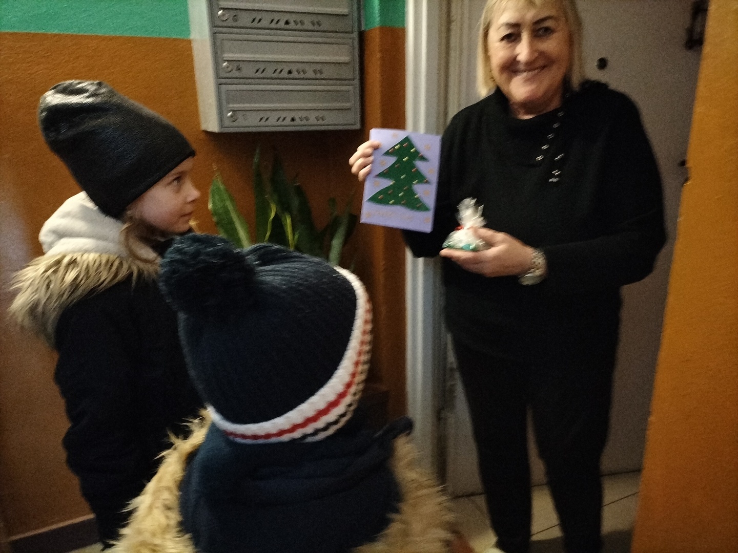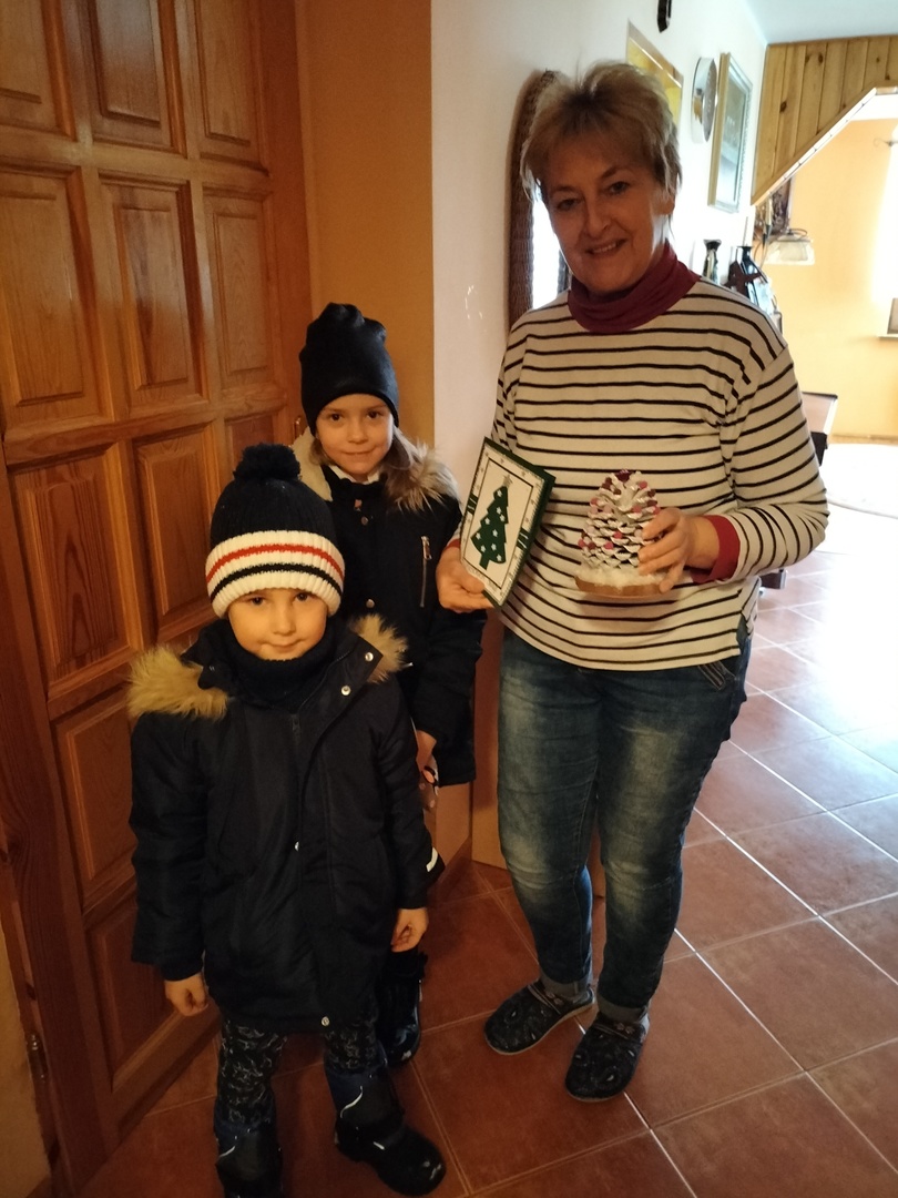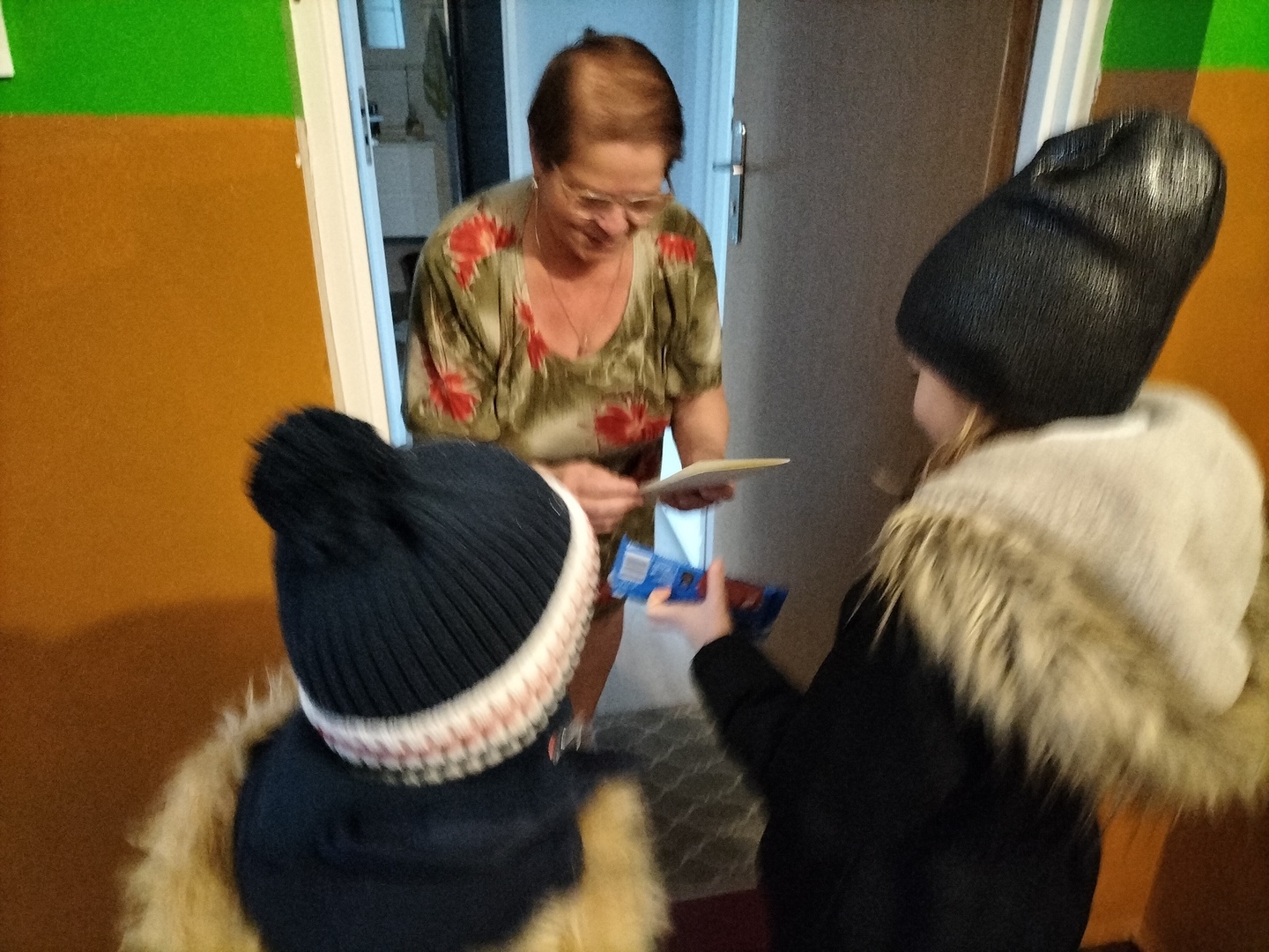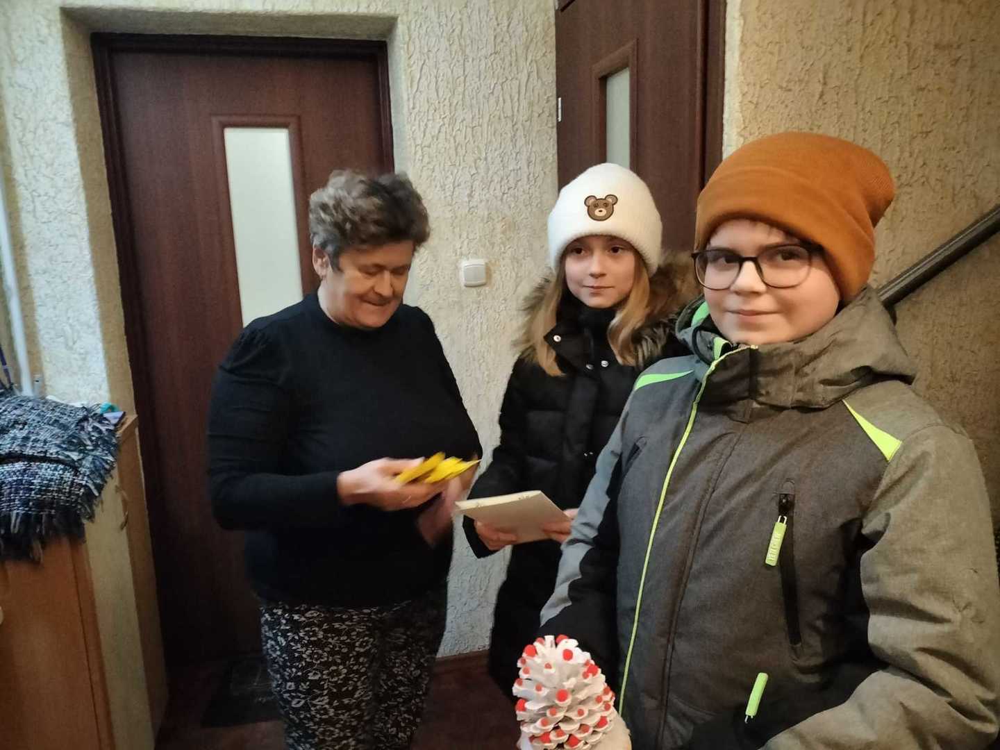 Delegacja uczniowska w imieniu dyrekcji, nauczycieli i innych uczniów odwiedziła naszych emerytowanych nauczycieli i pracowników pod opieką p.E.Mentel. Uczniowie wręczyli pięknie wykonane kartki i upominki oraz złożyli życzenia świąteczne.