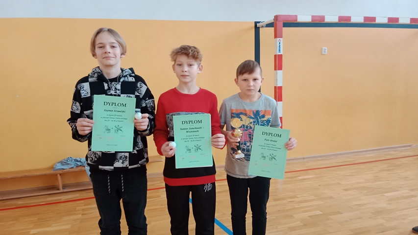 Dnia 12 grudnia 2022 r. w naszej szkole na hali sportowej odbył się turniej tenisa stołowego klas IV – VIII. Rozgrywki odbyły się w dwóch kategoriach wiekowych klasy IV – VI i VII – VIII z podziałem na dziewczęta i chłopców. Do turnieju zgłosiło się 25 uczniów i 13 uczennic. Grano systemem do dwóch przegranych. Turniej przebiegał w przyjaznej i sportowej atmosferze z zachowaniem zasad zdrowej rywalizacji.