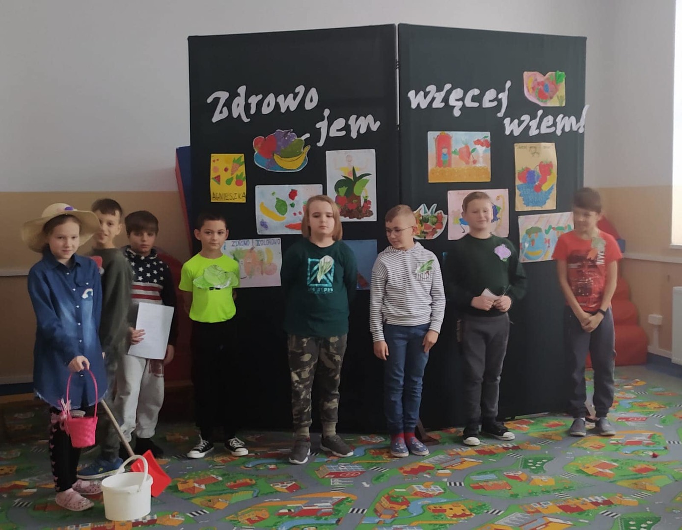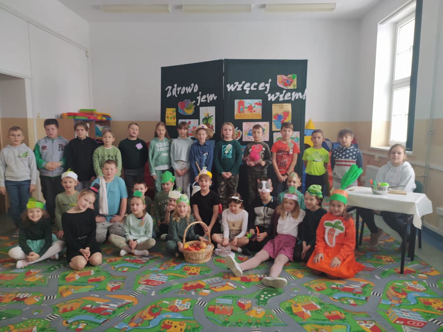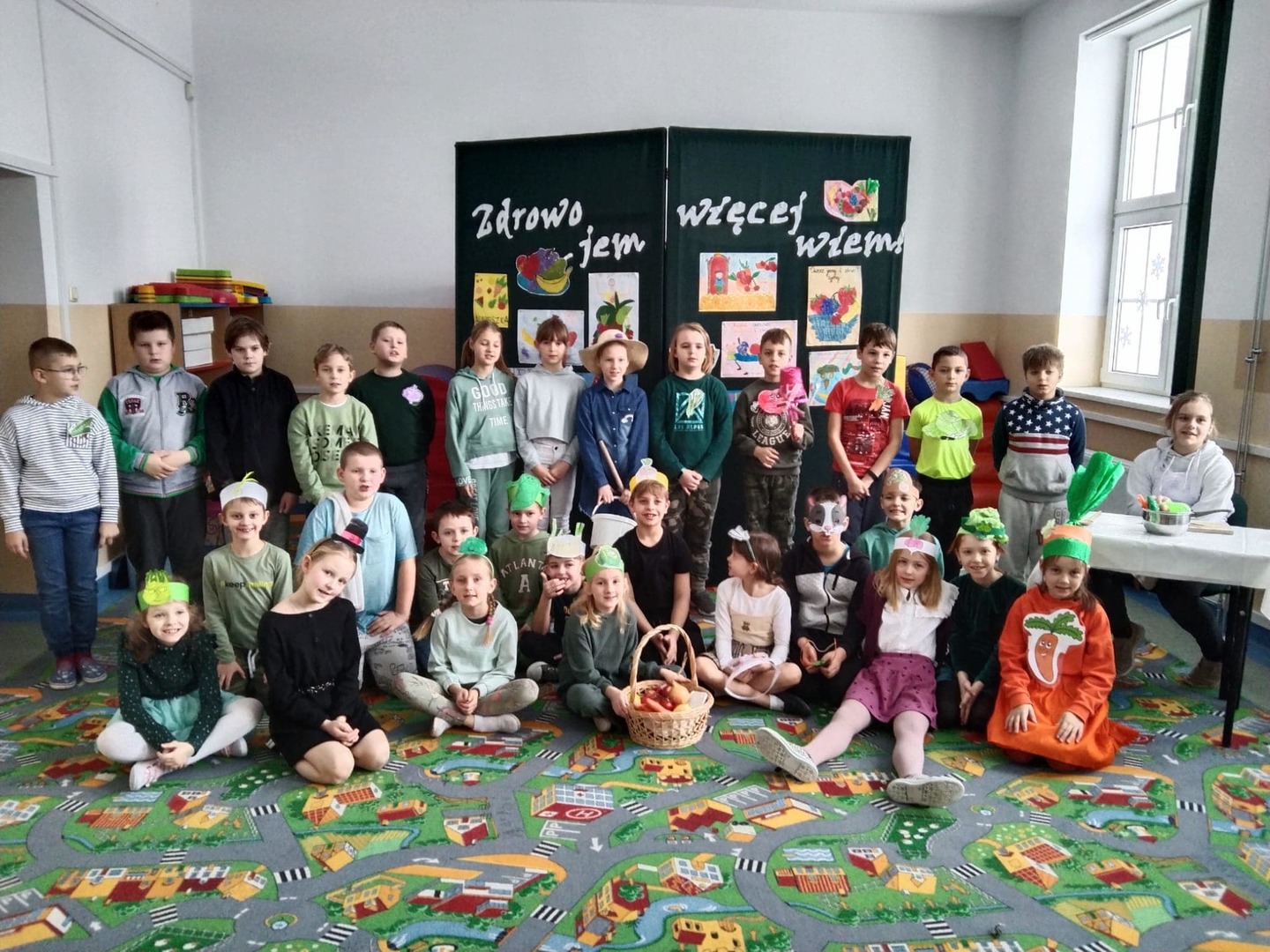 We wtorek podzieliły się zdobytą wiedzą z młodszymi koleżankami i kolegami z oddziałów przedszkolnych i klasy 1. Na koniec zaprezentowały się w inscenizacji o zdrowych warzywach i owocach.