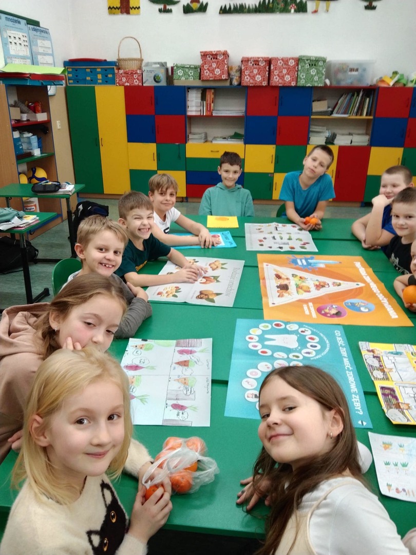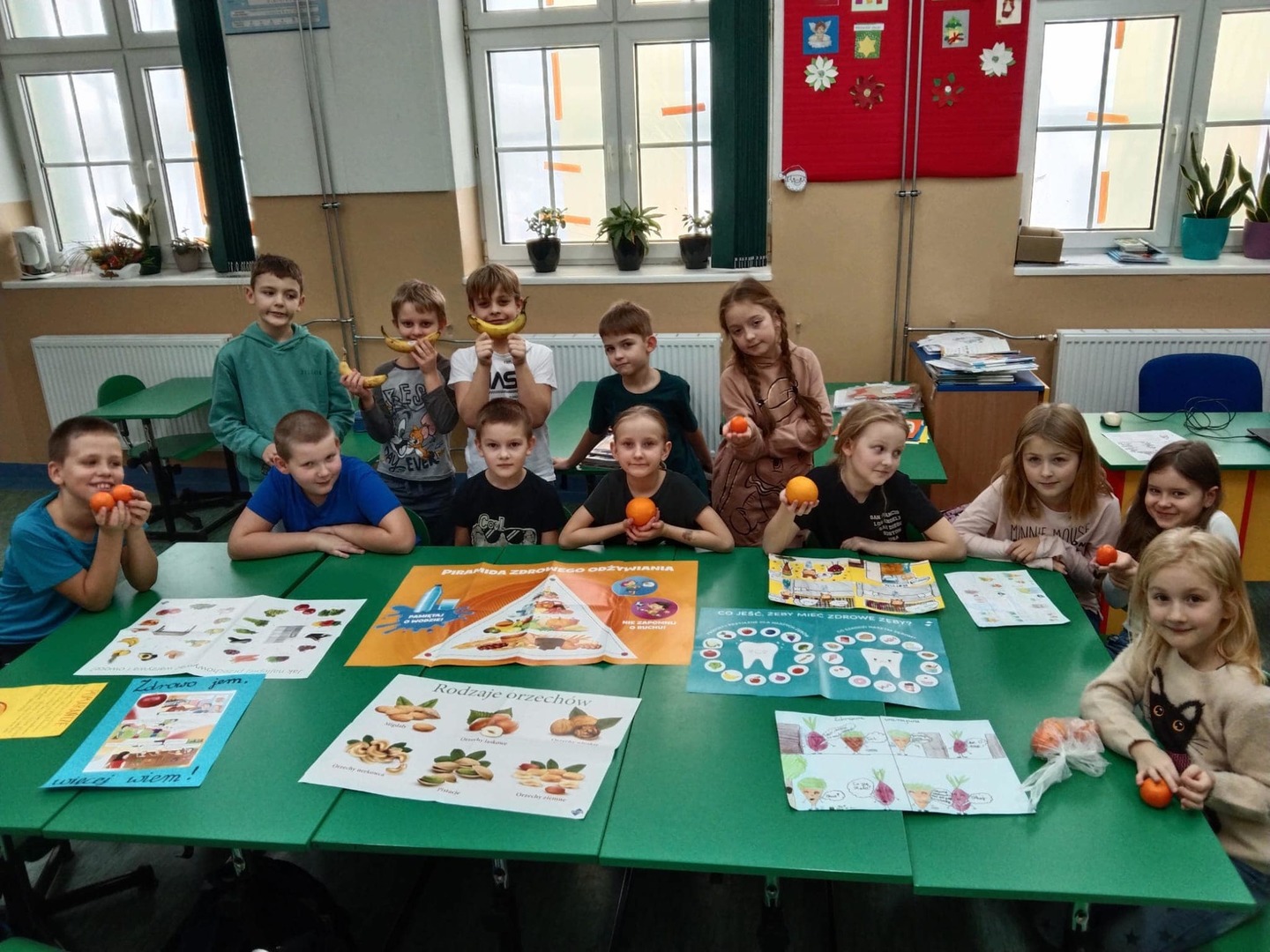 Uczniowie klasy 2 i 3 uczestniczą w projekcie "Zdrowo jem, więcej wiem!" Głównym celem jest wykształcenie u dzieci postaw prozdrowotnych poprzez uczenie zasad zdrowego odżywiania oraz przekazywania wiedzy na temat produktów służących zdrowiu.