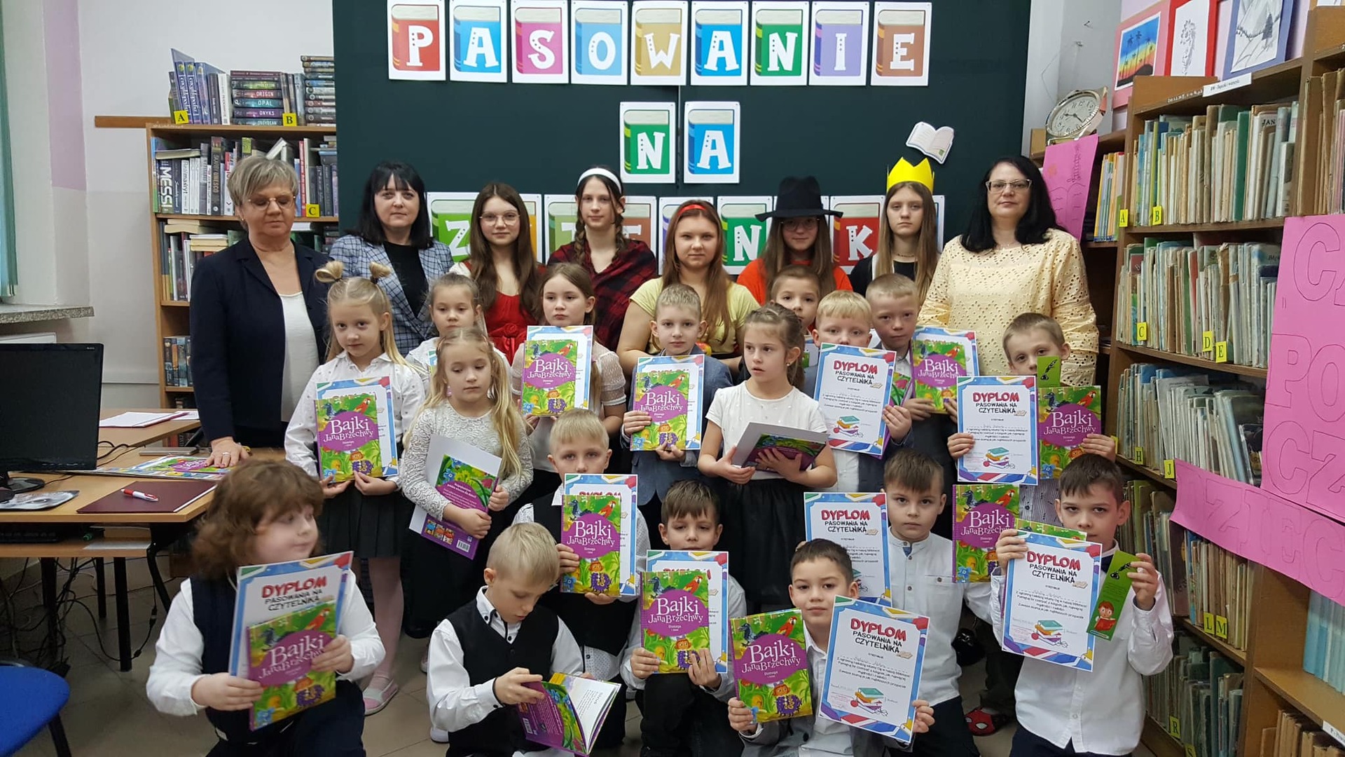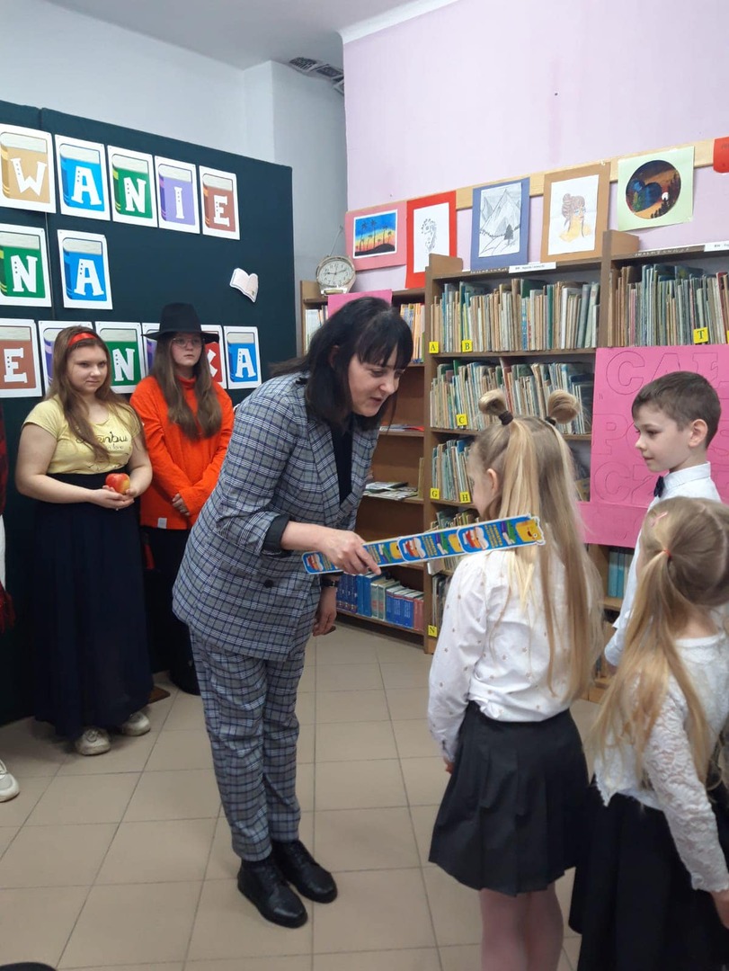 Na pamiątkę uroczystości pani Dyrektor Iwona Galińska wręczyła dzieciom książki, zakupione z funduszy Rady Rodziców. Oprócz tego uczniowie otrzymali dyplomy i zakładki zakupione przez bibliotekarkę, a także słodki poczęstunek od Pani Dyrektor