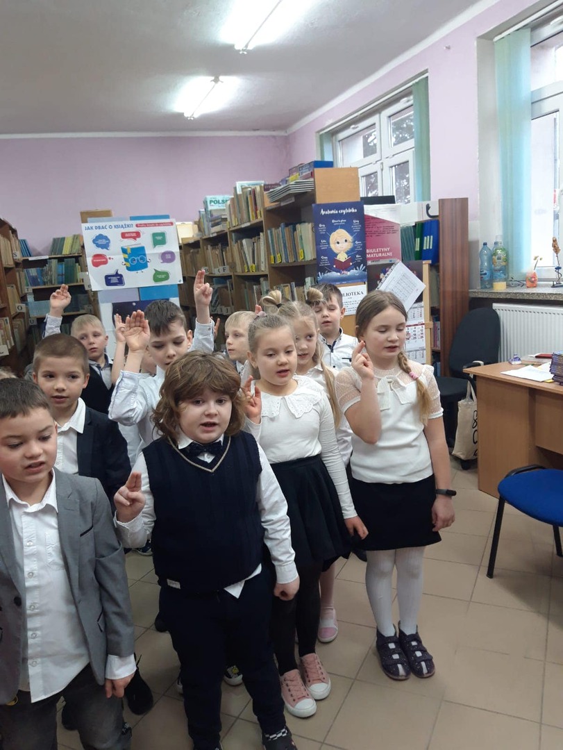 Następnie uczniowie klasy I w obecności pani dyrektor, Iwony Galińskiej oraz wychowawczyni, pani Teresy Pietkiewicz złożyli uroczyste przyrzeczenie, że będą kochać książki i „obowiązki czytelnika wypełniać z wielką powagą”. Potem nastąpiło pasowanie na czytelnika.