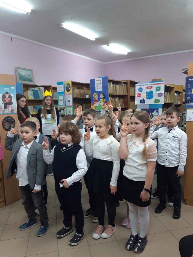 17 lutego w naszej szkole odbyło się pasowanie na czytelnika uczniów klasy I. Celem uroczystości było zachęcenie dzieci do wypożyczania książek z biblioteki szkolnej oraz rozwijania umiejętności i pasji czytania. Uczennice z kl. VIII a i VIII b: Ewa Ciszewska, Marlena Olsztyn, Diana Rant, Magda Stefanowicz, Zuzanna Stafanowicz oraz Nikola Żołowska pod opieką p.Jolanty Staśkiewicz zaprezentowały krótką część artystyczną, podczas której pierwszoklasiści poznali regulamin biblioteki, dowiedzieli się, jak dbać o książki, a także odgadywali zagadki.