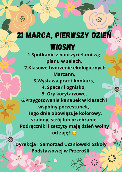 Przynieście tego dnia produkty na kanapki i materiały na eko-Marzanny, które będziecie przygotowywać.