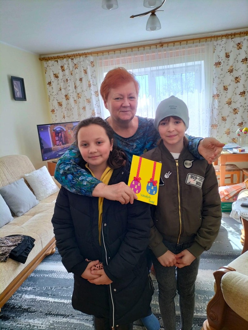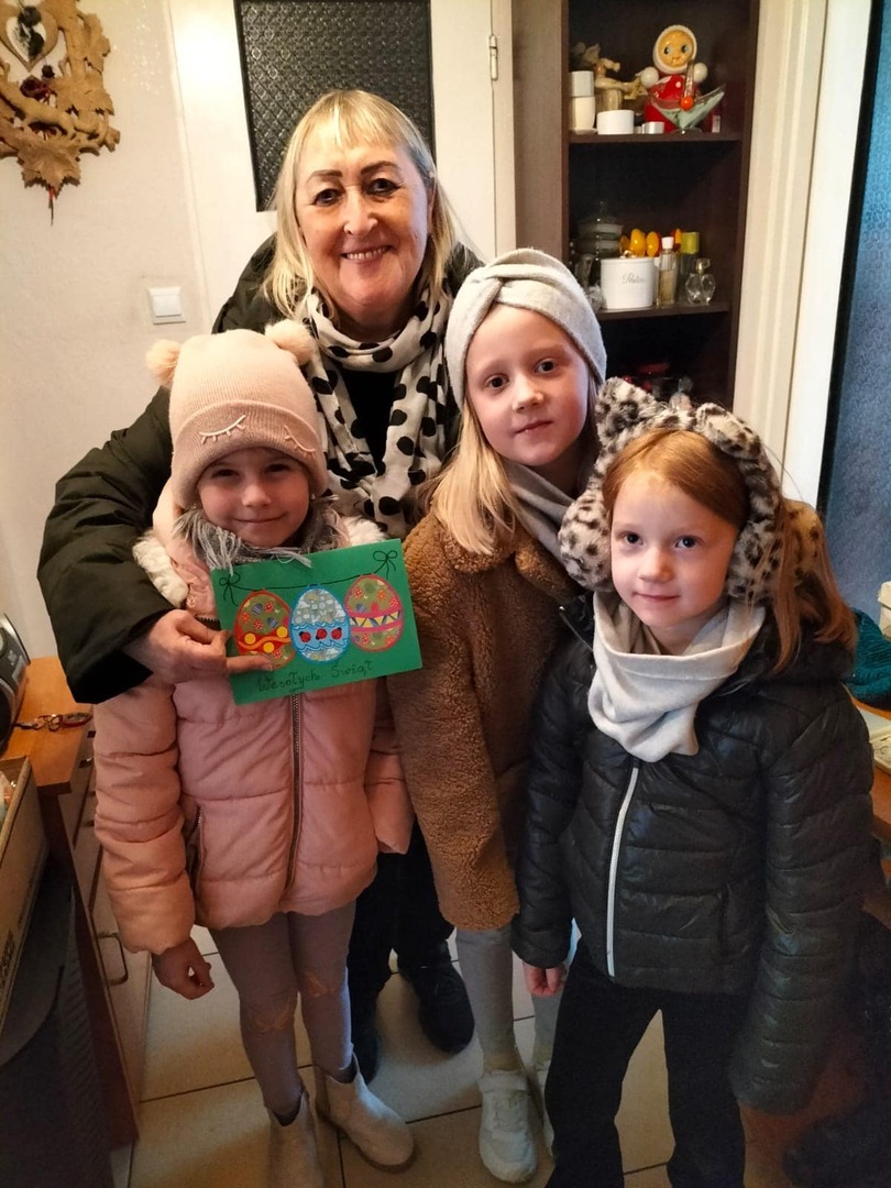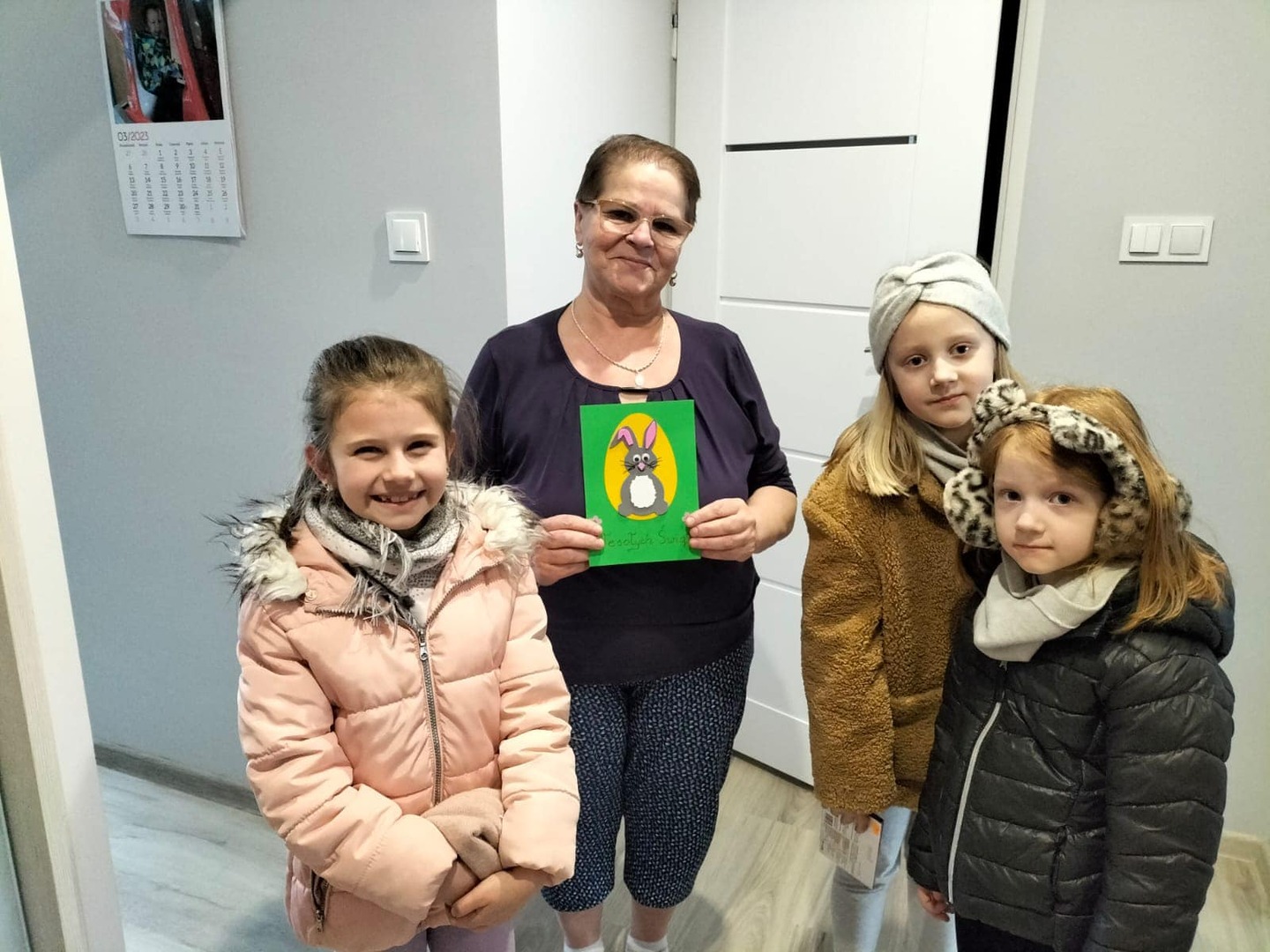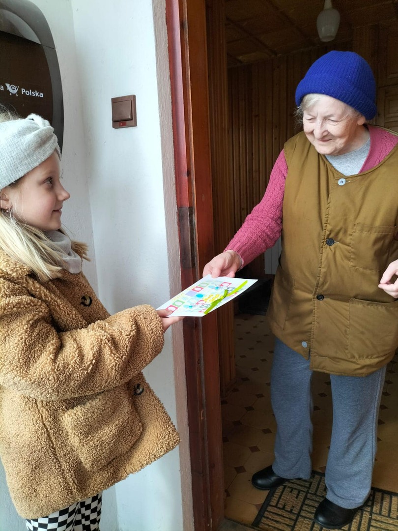 Jeszcze kilka dni zostało do świąt, a już dzieciaki z panią Elą Mentel ruszyły w trasę z życzeniami od dyrekcji, pracowników i uczniów. Piękne kartki wykonane przez panie: Monikę Radzewicz, Elę Mentel, Anię Ciszewską i Dorotę Lejmel. Adresaci byli bardzo zadowoleni.