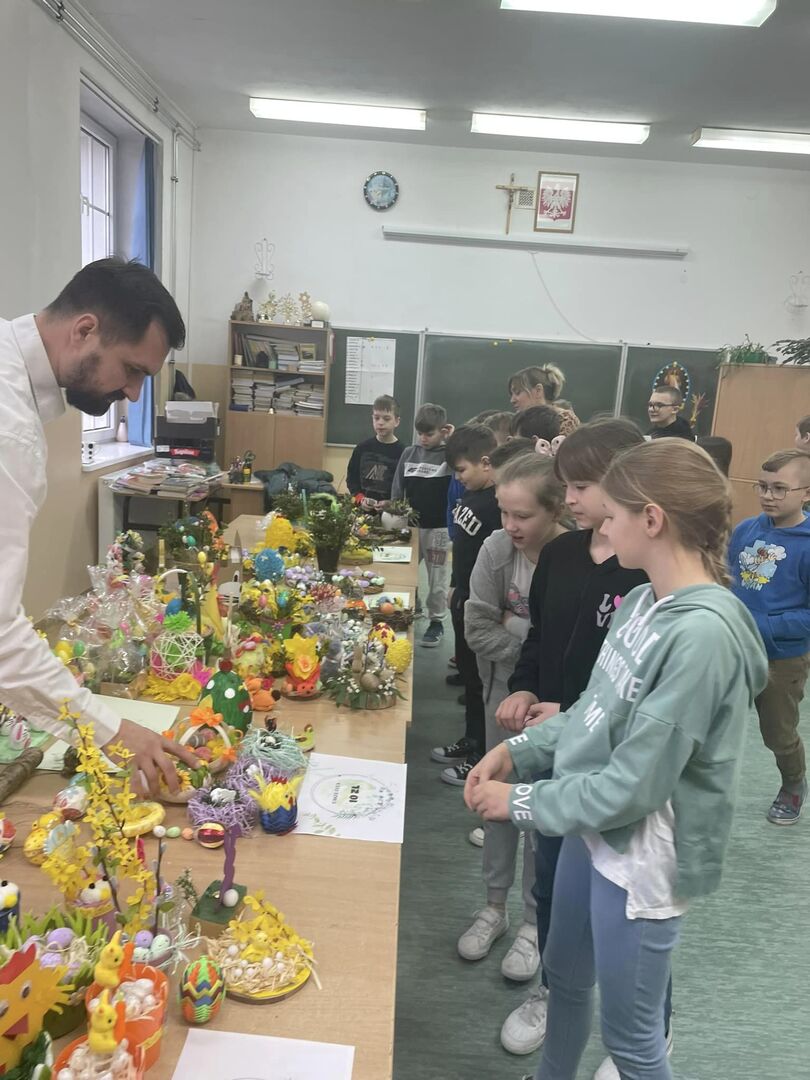 Pierwszy dzień naszej sprzedaży ozdób wielkanocnych był niezwykle owocny. Odwiedzili nas m.in. pan wójt Marcin Brzozowski oraz pani sekretarz Maria Bogdan. Zakupy zrobili też nauczyciele, pracownicy szkoły, pracownicy innych instytucji, uczniowie i rodzice. W akcji przez cały dzień dzielnie pomagał nam pan Kamil Pietruszewski z Rady Rodziców. Udało się zebrać ponad 1000 zł! Obiecujemy, że te pieniądze zostaną wykorzystane na coś, co przyda się dzieciakom. A to jeszcze nie koniec, bo spotykamy się też w poniedziałek i wtorek, i mimo, że wiele ozdób zostało już sprzedanych, nadal dostarczane są nowe. Doceniamy wkład, użyte materiały, energię, czas, a przede wszystkim Wasze ogromne serce.