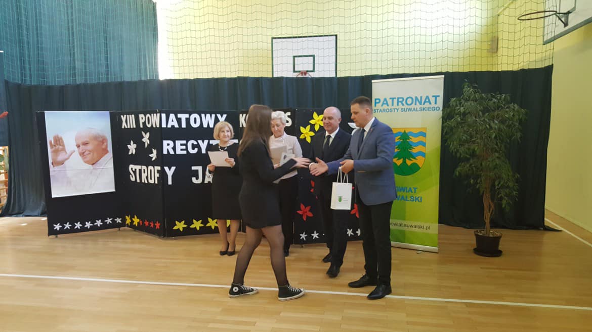 Zmęczone, ale szczęśliwe...XIII Powiatowy Konkurs Recytatorski w Filipowie za nami i…. mamy III miejsce spośród innych uczniów z powiatu suwalskiego. Gratulujemy Annie Wolińskiej, która otrzymała dyplom i nagrodę z rąk Wicestarosty Suwalskiego, Artura Łuniewskiego oraz Oliwii Kwiatkowskiej, która otrzymała podziękowanie i upominek za udział w wydarzeniu. Pomocą i wsparciem w przygotowaniach służyła p. M. Leszczyńska- Leończuk. Dziękujemy p. Jolancie Staśkiewicz za opiekę nad uczennicami w czasie wyjazdu. (inf. M. Leszczyńska- Leończuk, fot. J. Staśkiewicz)