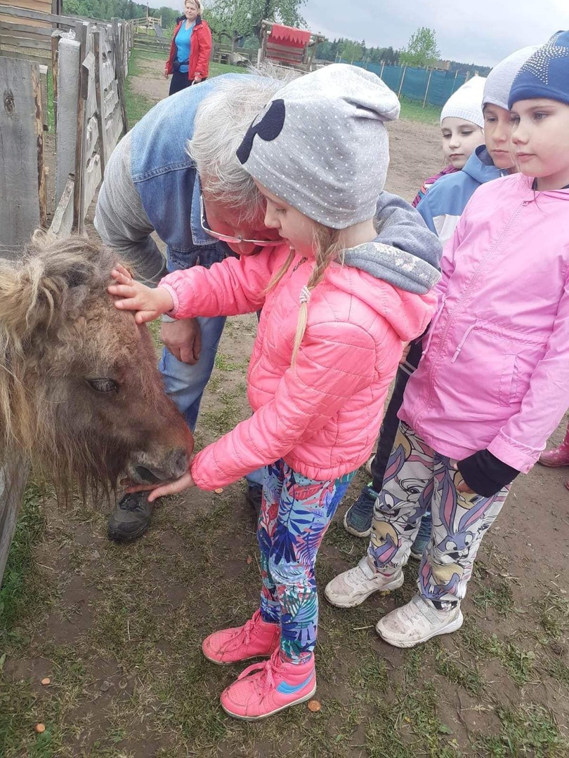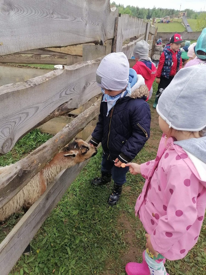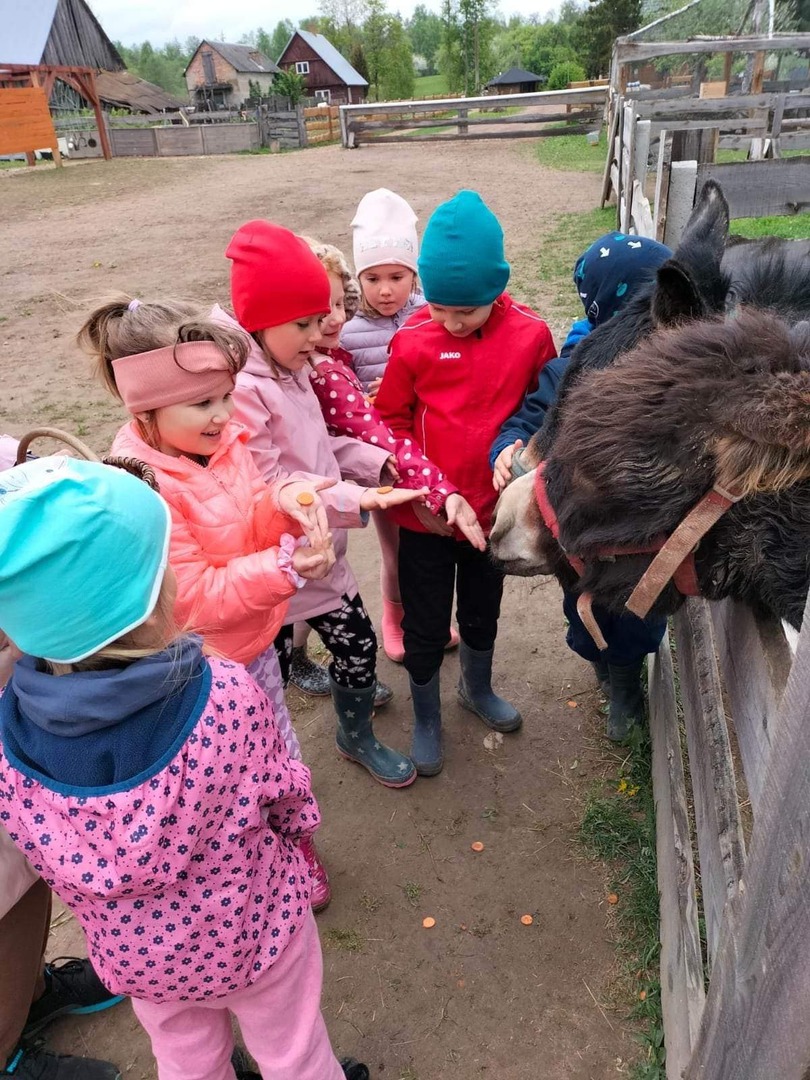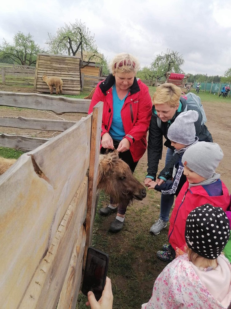 16 maja 2023r. dzieci z oddziałów przedszkolnych wybrały się na wycieczkę do Siedliska Bogdanka w Leszczewku, gdzie czekała na nich moc atrakcji. Dzieci karmiły krążkami marchewki zwierzęta (kucyka, alpaki, osły i kozy) oraz głaskały je.