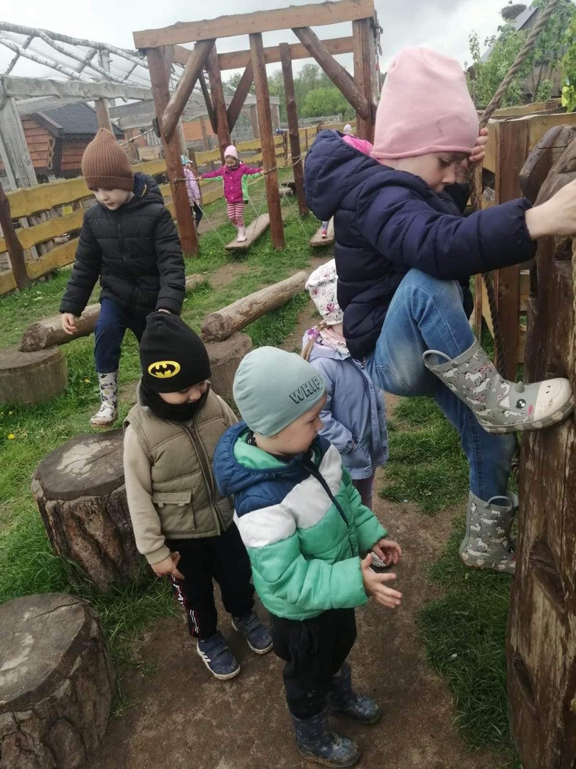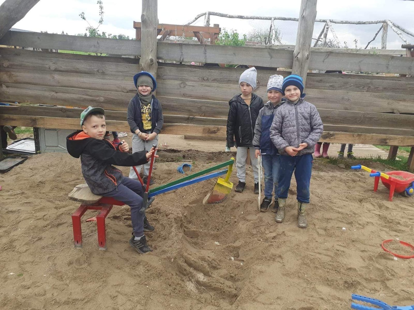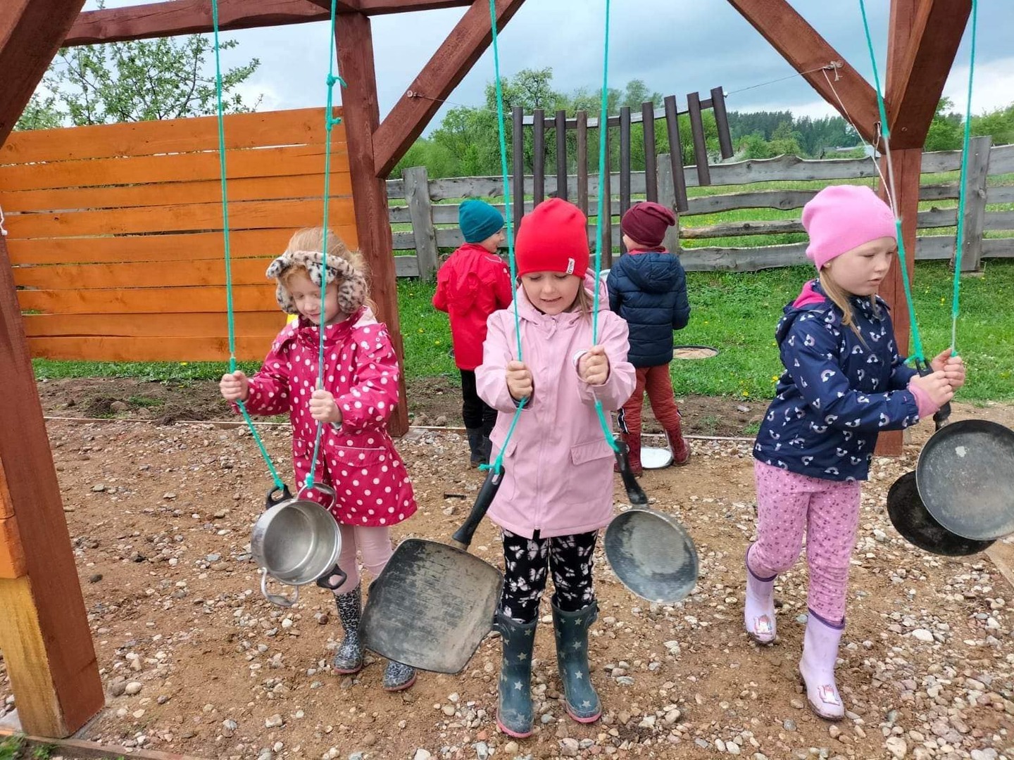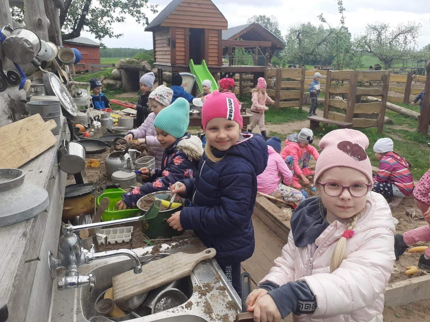 Dużym zainteresowaniem cieszyła się kuchnia błotna, w której dzieci korzystały z prawdziwych naczyń i przygotowywały różne potrawy. Kilkakrotnie pokonywały tor przeszkód i szukały wyjścia z labiryntu. Chętnie korzystały z atrakcyjnego placu zabaw.
