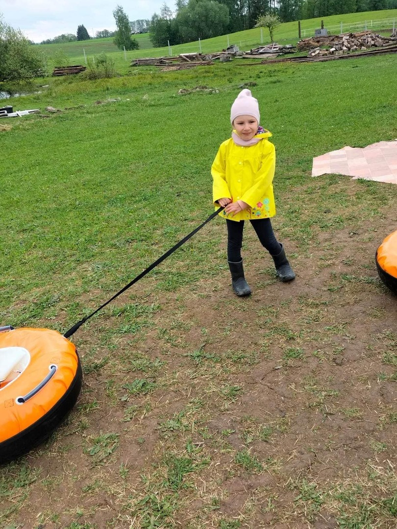 Kolejną atrakcją był zjazd na tyrolce, który był niesamowitym wyzwaniem dla dzieci oraz zjazd z małej lub dużej zjeżdżalni na pontonach. Na koniec przedszkolacy zjedli upieczone kiełbaski.