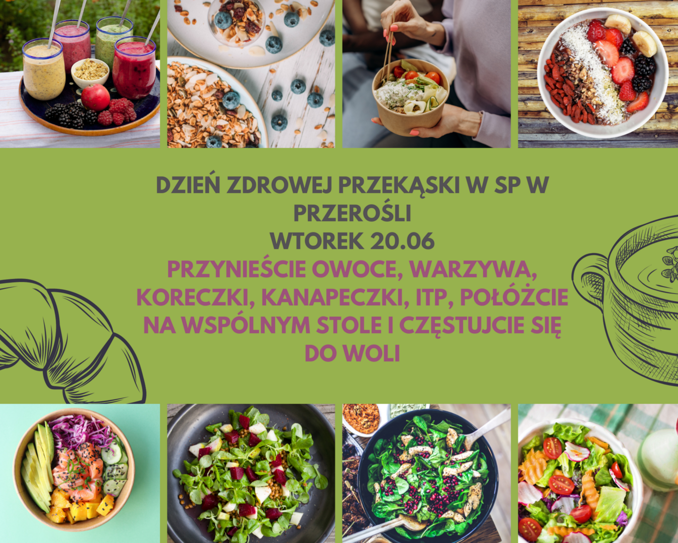 Serdecznie zapraszamy uczniów klas 4-8 do wzięcia udziału w Dniu Zdrowej Przekąski, który odbędzie się we wtorek, 20 czerwca w Szkole Podstawowej w Przerośli.