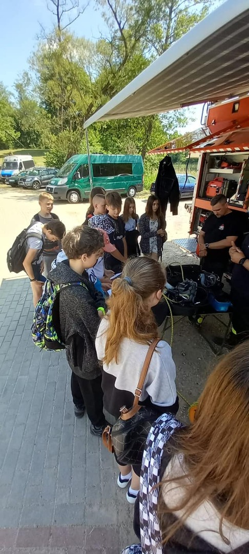 Uczniowie klasy 6, pod opieką P. D. Dobrzyń, mieli okazję obejrzeć z bliska sprzęt ratowniczy oraz pokaz ratownictwa wodnego przez służby mundurowe, tj. Policję, Państwową Straż Pożarną, Ochotniczą SP, ratowników wodnych i medycznych, straż wodną i wojsko. Manewry odbyły się na plaży nad J. Rospuda w gminie Filipów.