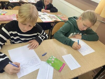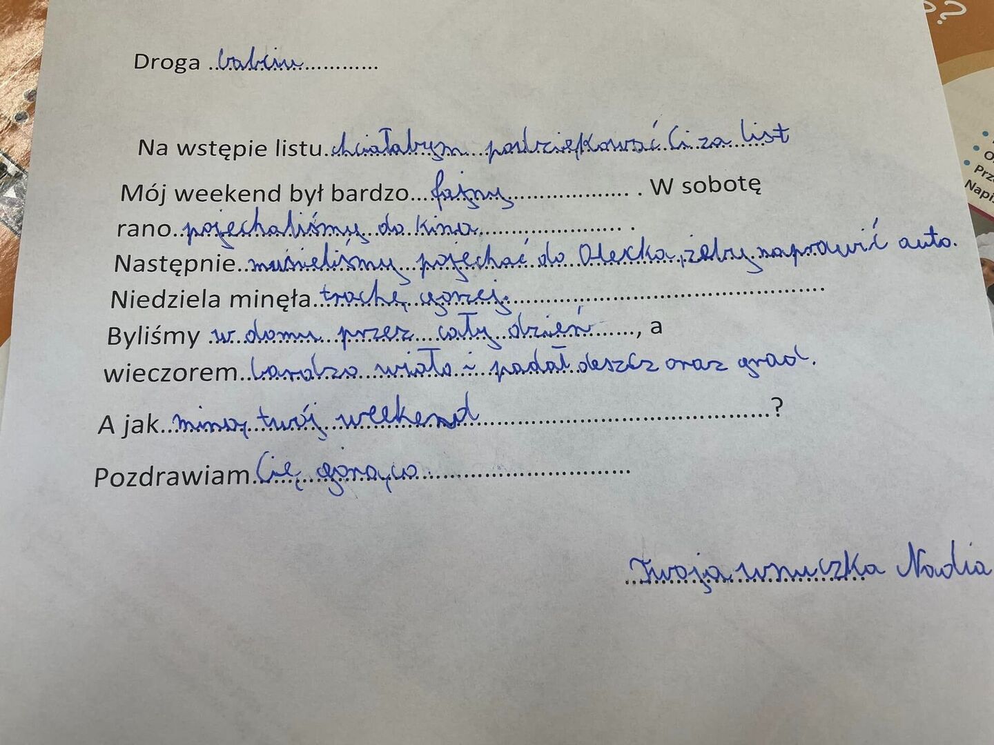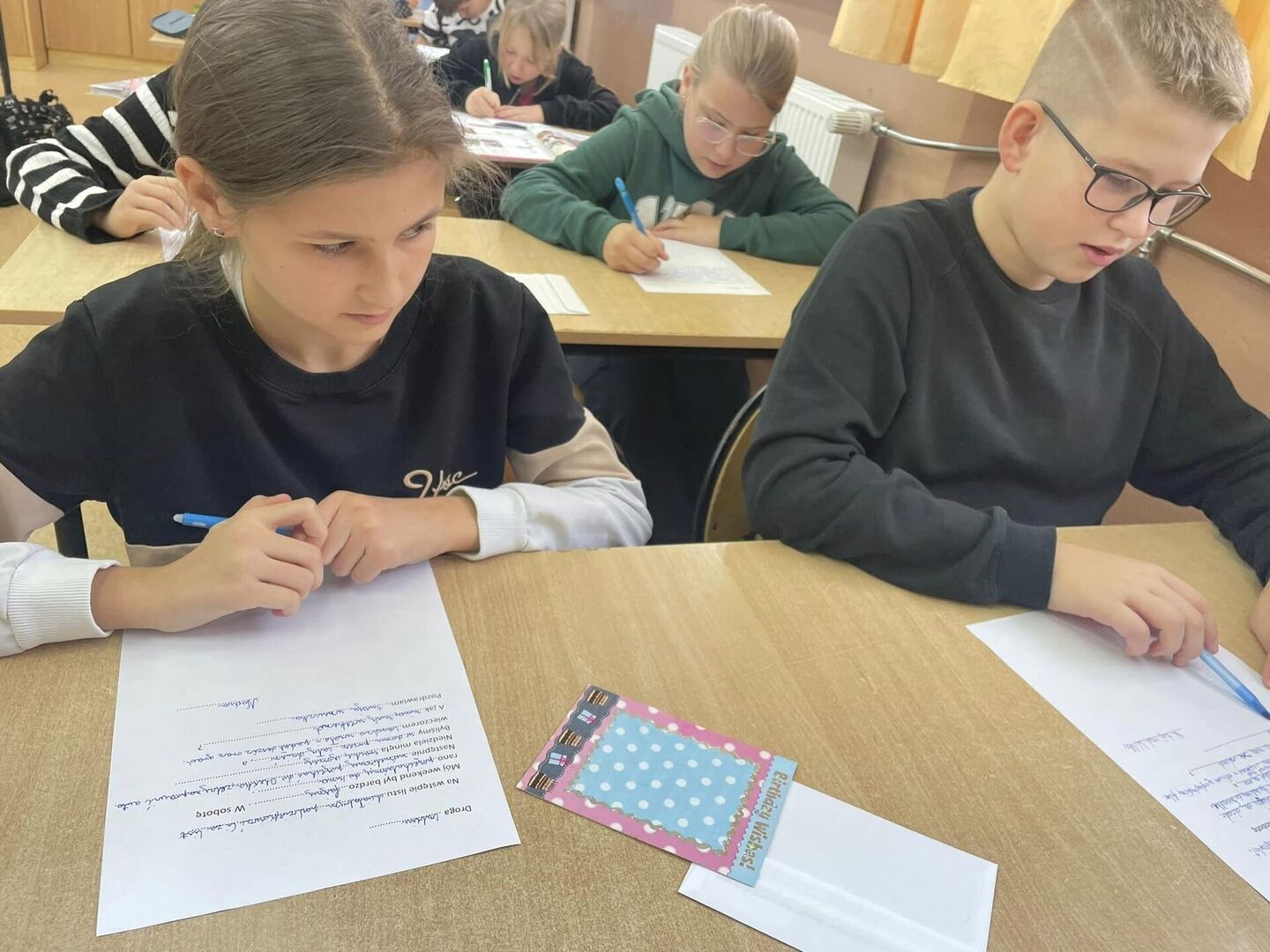 Starsze dzieci przypomniały jak pisze się prosty list i kartkę do kogoś bliskiego. W dobie internetu i wiadomości wysyłanych za pomocą smartfona, nie możemy zapominać o tradycyjnych listach i o tym, że czasem miło jest przesłać życzenia lub pozdrowienia pocztą. (M. Radzewicz, M.Leszczyńska-Leończuk)