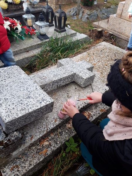 Klasa 2 z wychowawczynią, panią Teresą Pietkiewicz odwiedziła i zapaliła znicze na grobach zapomnianych oraz NN.