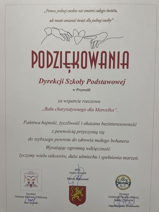 Małemu Marcelowi życzymy zdrowia i mimo wielu trudności, szczęśliwego dzieciństwa, zaś Rodzicom- wytrwałości i cierpliwości w pokonywaniu codziennych trudów.