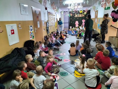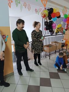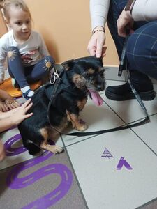 Po weekendzie nasze przedszkolaki spotkała niesamowita niespodzianka. Otóż odwiedził je pan Kazimierz Walijewski z fundacji "Zwierzęta niczyje" wraz ze swoim pupilem- pieskiem o imieniu Safona. Pan opowiadał dzieciom jak należy traktować czworonogi (psy i koty), mówił czego potrzebują, aby być szczęśliwe, czym je karmić i jak o nie dbać. Przedszkolaki aktywnie brały udział w spotkaniu i udzielały odpowiedzi na zadane pytania. Były zachwycone wizytą pieska. Na koniec OP w imieniu całej szkoły przekazały na ręce fundacji, karmy, smakołyki i inne gadżety dla psów i kotów, które udało się zebrać podczas zbiórki w naszej placówce. Dziękujemy fundacji "Zwierzęta niczyje" za piękne i pouczające spotkanie oraz za to, że dzieci mogły pogłaskać Safonę. Zapraszamy częściej!