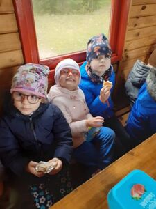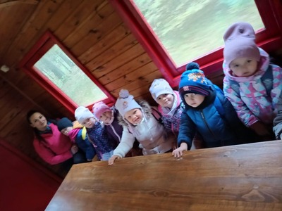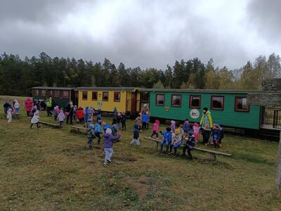 "Wsiąść do pociągu byle jakiego..." Jak się okazuje, nie byle jakiego...a do Wigierskiej Kolejki Wąskotorowej w Płocicznie. Kolejka jest cennym zabytkiem techniki oraz całoroczną atrakcją turystyczną regionu. Przedszkolaki miały przyjemność przejażdżki wzdłuż brzegu jeziora Wigry. Podczas podróży dzieci obserwowały piękne widoki, malując palcami po zaparowanych szybach... Na zakończenie dzieci chętnie zjadały pieczone kielbaski przy ognisku. Do Przerośli wróciły uśmiechnięte i rumiane.