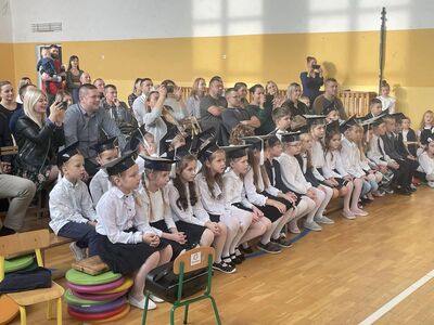 Dnia 8 listopada 2023 r. odbyła się w naszej szkole uroczystość pasowania na uczniów klasy pierwszej. To bardzo ważne wydarzenie nie tylko dla najmłodszych, ale również dla ich rodziców. Uczniowie klasy pierwszej przedstawili program artystyczny, w którym zaprezentowali swoje umiejętności recytatorskie, wokalne i taneczne. Najważniejszym momentem uroczystości było złożenie przez dzieci ślubowania oraz pasowanie na uczniów, którego dokonała dyrektor I.B. Galińska. Na zakończenie wszyscy otrzymali pamiątkowe dyplomy i legitymacje szkolne. Nie zabrakło też upominków od dyrekcji, Rady Gminy, Rodziców, Małego Samorządu i wychowawcy. Następnie skosztowano pysznego tortu przygotowanego przez rodziców. 10 listopada 2023 r. dzieci wraz z wychowawcą i dyrekcją posadziły pamiątkowe drzewko. Naszym pierwszoklasistom życzymy sukcesów i radości ze zdobywanej wiedzy.
