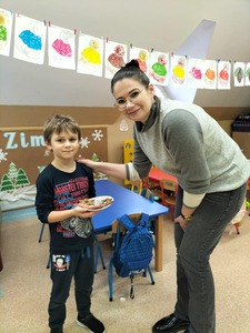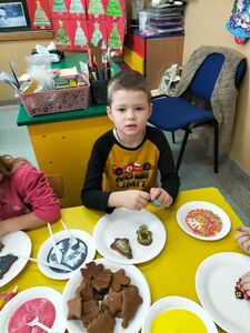 W grupie 6-latków już zapanował świąteczny nastrój, a wszystko za sprawą dekorowania pierników. W ostatni piątek dzieci z oddziału zerowego z wielkim zapałem dekorowały świąteczne pierniki, którymi obdarowały dyrekcję, panią sekretarz, panie z OP oraz rodziców. Nie zabrakło również konsumowania ciasteczek. Czas minął bardzo miło. Pracy nad zdobieniem pierników towarzyszył śpiew kolęd i piosenek świątecznych.